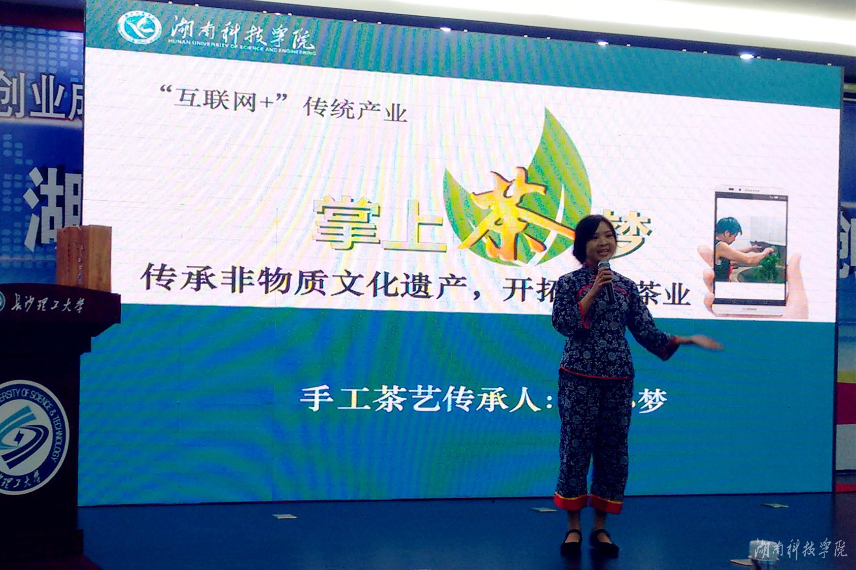 江小梦在颁奖仪式上展示《掌上茶梦》项目