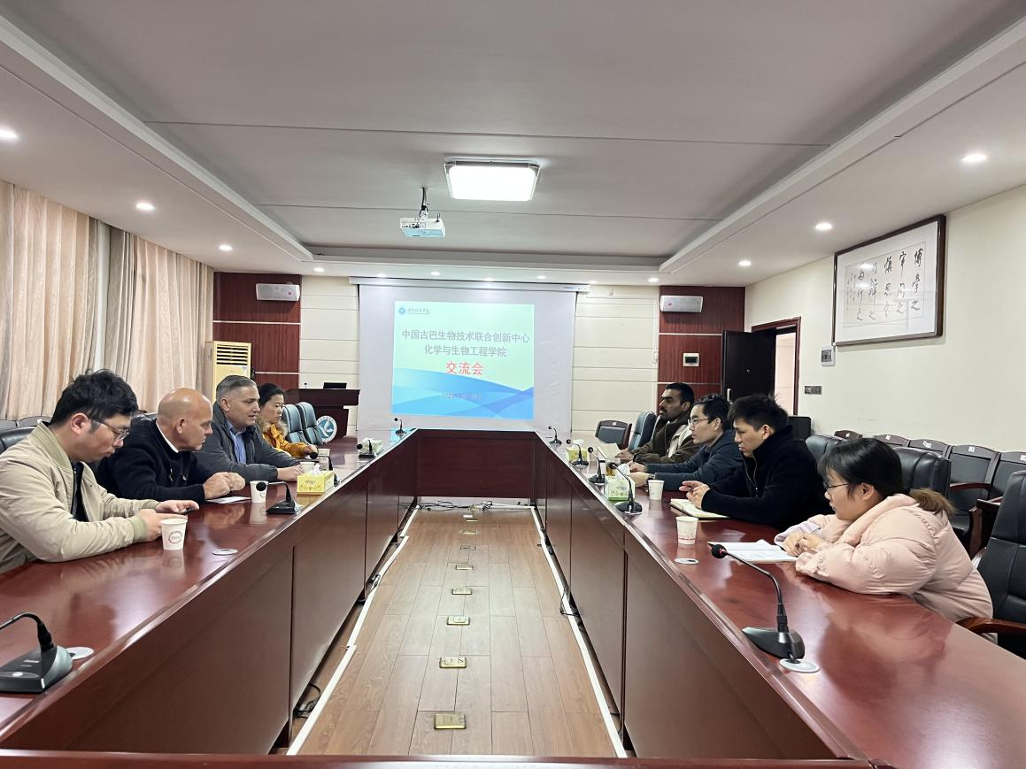 (本网讯 汪美凤)近日,为进一步加强我校与中国古巴生物技术联合创新中心的国际交流合作,进一步推动国家重点研发计划项目实施,化学与生物工程学院院长覃佐东同学院优秀教师代表与项目总负责人Yasser Perera教授团队举行座谈交流,深化校际校企合作、拓宽合作前景。