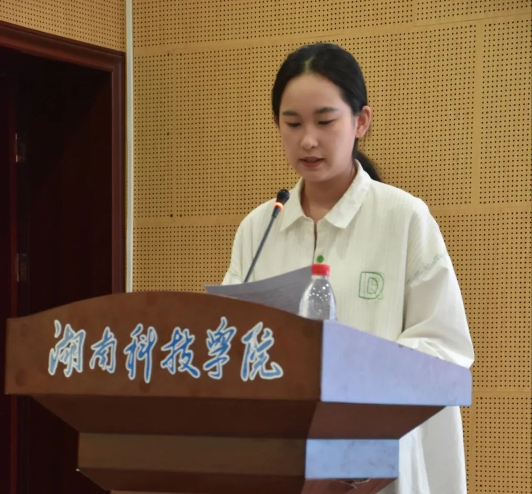 新生班主任代表罗妹老师通过自己的亲身经历给同学们提了几点建议:要珍惜时间,多读书,勤思考,重实践,也要重视健康,毕竟身体是革命的本钱。最后,罗老师祝愿在座的同学:“日日已点滴进步而成长,在湘科院的四年一路星光、一路凯歌。”