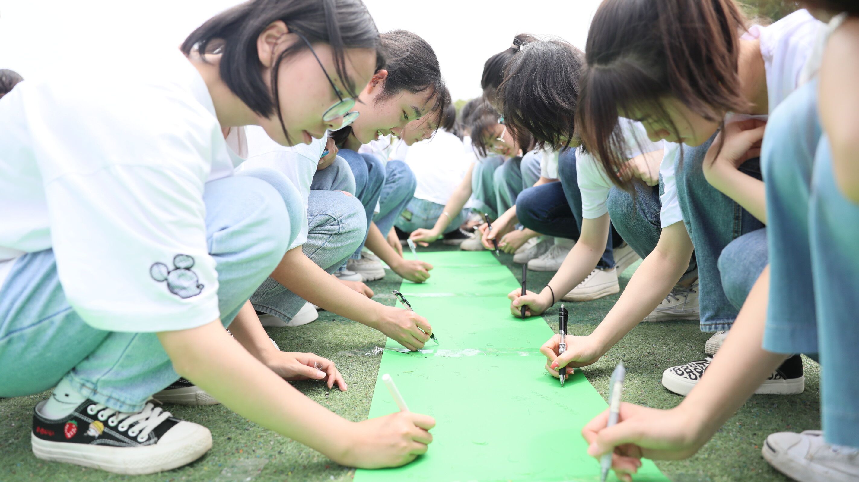 4月22日,第52个“世界地球日”,安博站官网登录入口_安博(中国)化学与生物工程学院开展了“珍惜地球资源,共建绿色家园”主题教育活动,在操场上用绿色纸拼成的“CO2↓”图案上面书写绿色环保标语并签字,以迎接世界地球日的到来,唤起更多的人树立爱护地球、保护家园的意识。