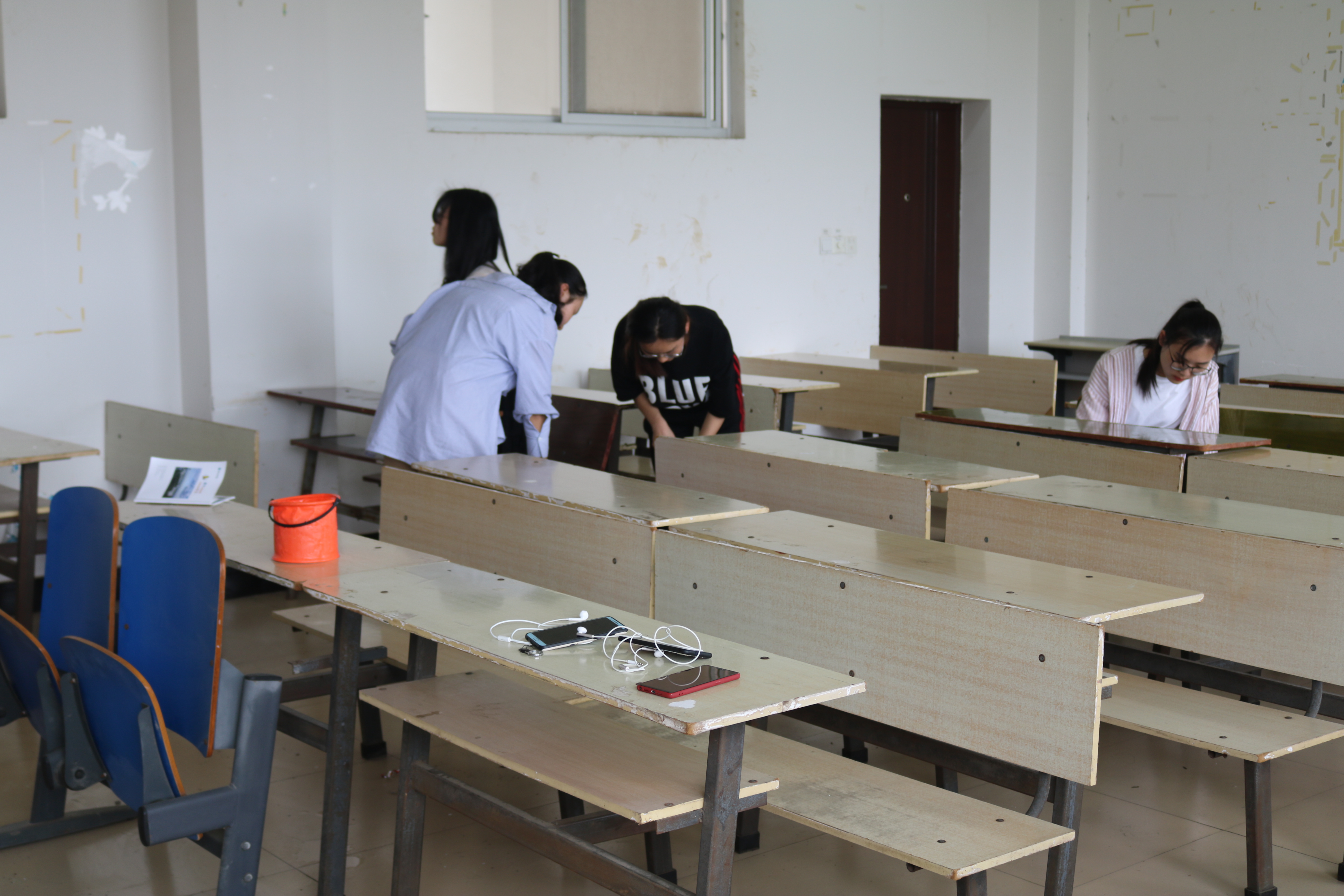 志愿者们根据分组前往指定的教室开展卫生清扫。墙面和桌面的废纸条、牛皮藓,楼道走廊间的食品袋,志愿者拿着工具一路清扫,不放过一个卫生死角,每一个角落都认真地进行清理。在他们一丝不苟下的工作下,黑板、讲台、门、桌子、墙壁等区域上附有陈旧的粘贴物都一一被揭除,黑板和讲台被擦拭得一尘不染。
