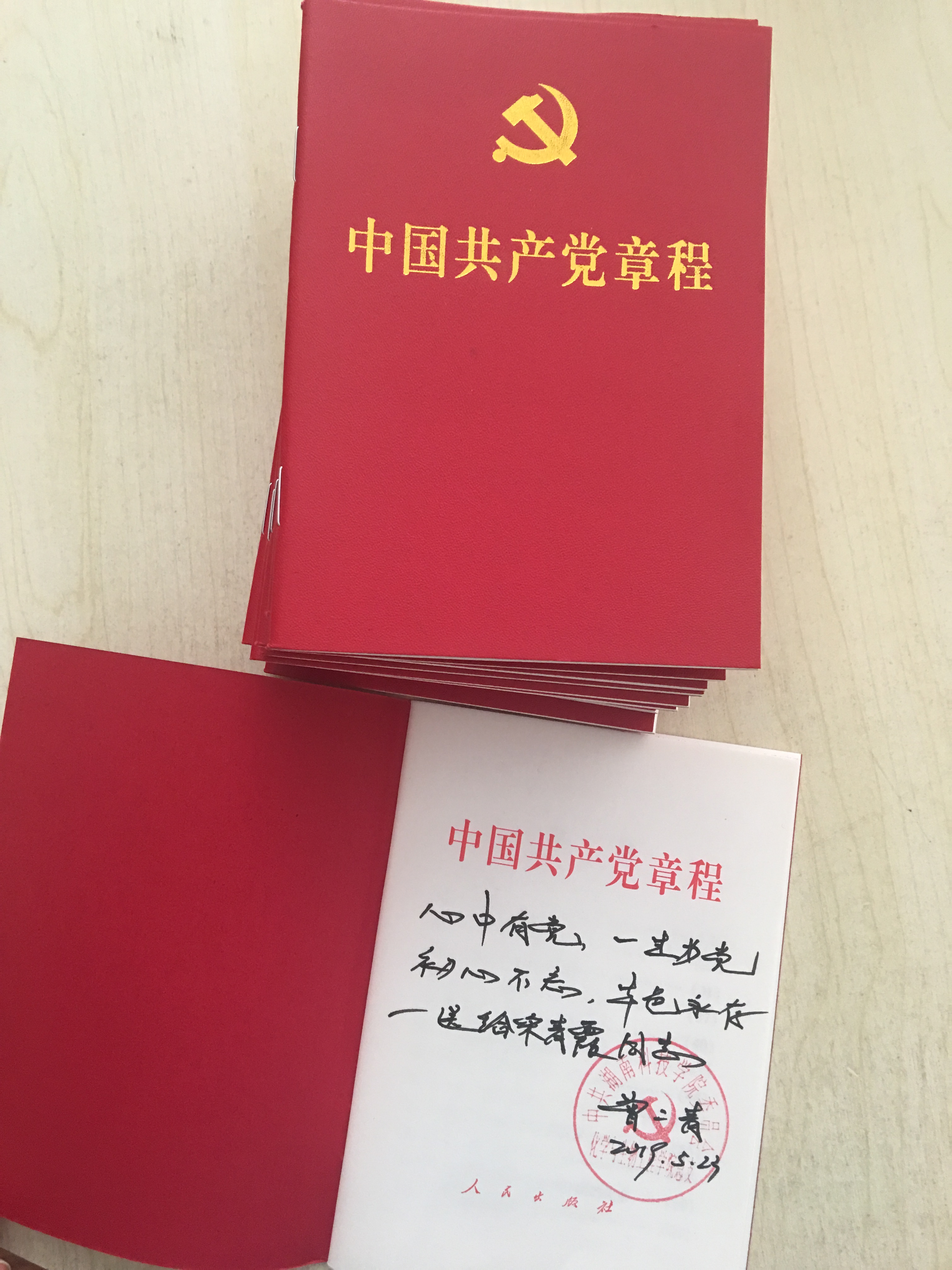 曾二青勉励毕业生党员将个人理想融入时代浪潮,甘于奉献,勇于奋斗,并提出五个牢记:牢记学习根本、牢记为人民服务的宗旨、牢记艰苦奋斗的宗旨、牢记砥砺前行的目标、牢记廉洁自律的准则。课堂上,曾二青还为每一位毕业生党员送上了毕业纪念——《中国共产党党章》,并逐一为他们写下寄语。