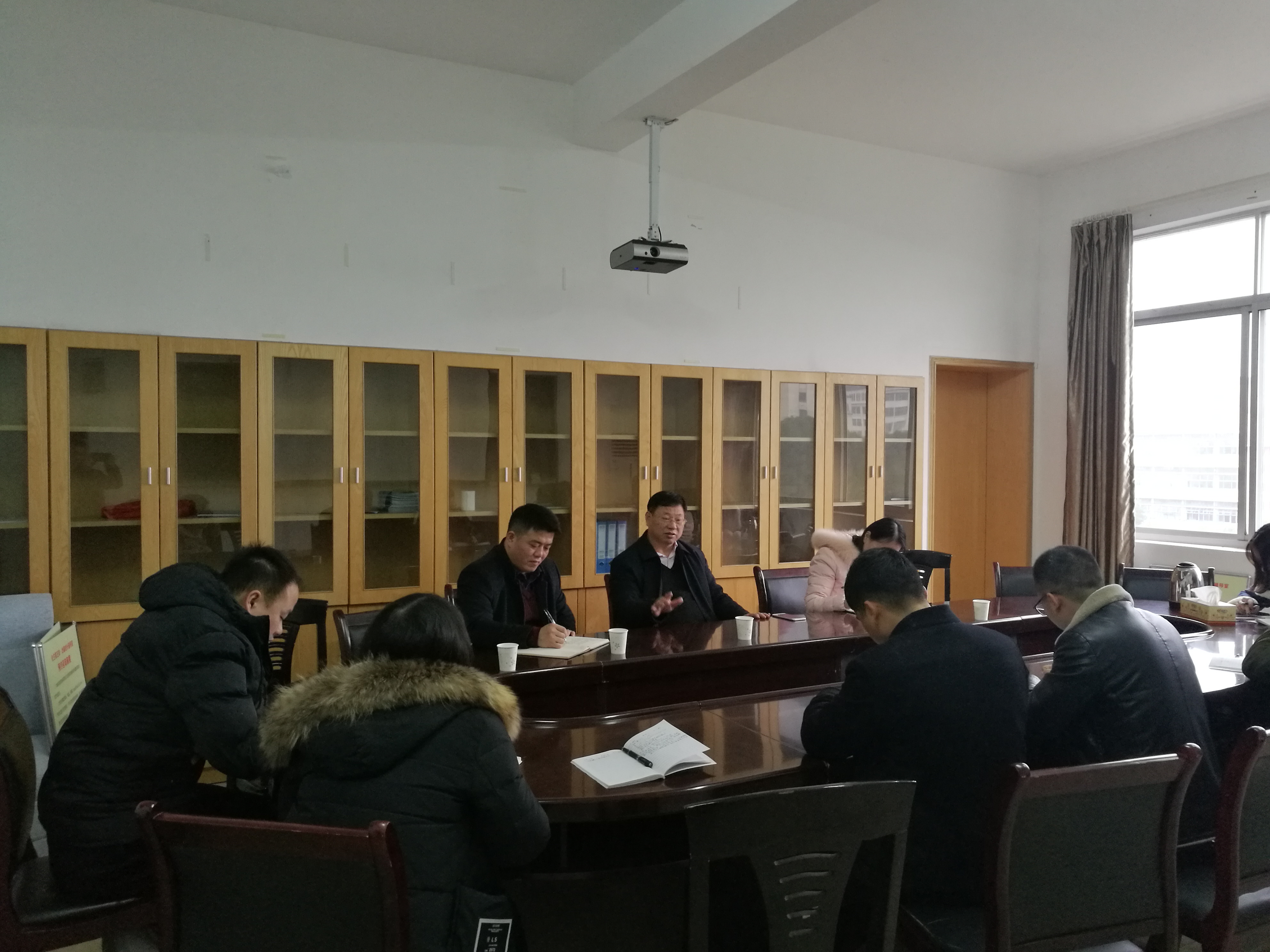 12月26日上午,校学工部部长唐华山一行三人来学院就“左岸·心情”特色成长辅导室建设情况进行调研及座谈。学院副院长刘小文、党总支副书记任学兵及全院辅导员参加。