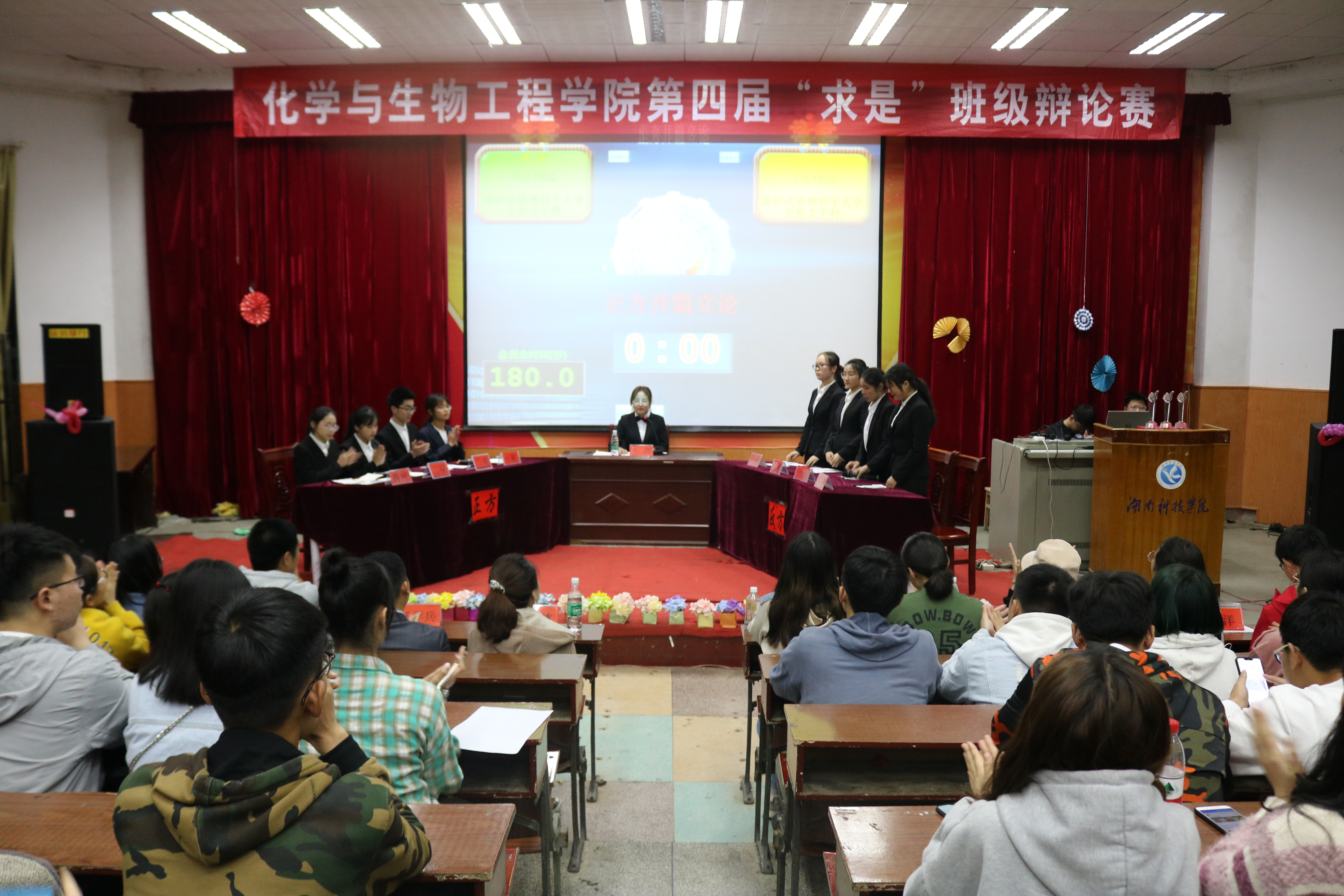 本网讯(通讯员 唐菁)4月13日晚,化生院第四届“求实”班级辩论赛决赛于明德楼一楼报告厅举办。比赛在食品1802、生教1802、化学1803、制药1801四支班级队伍之间展开,进行最后的争夺。