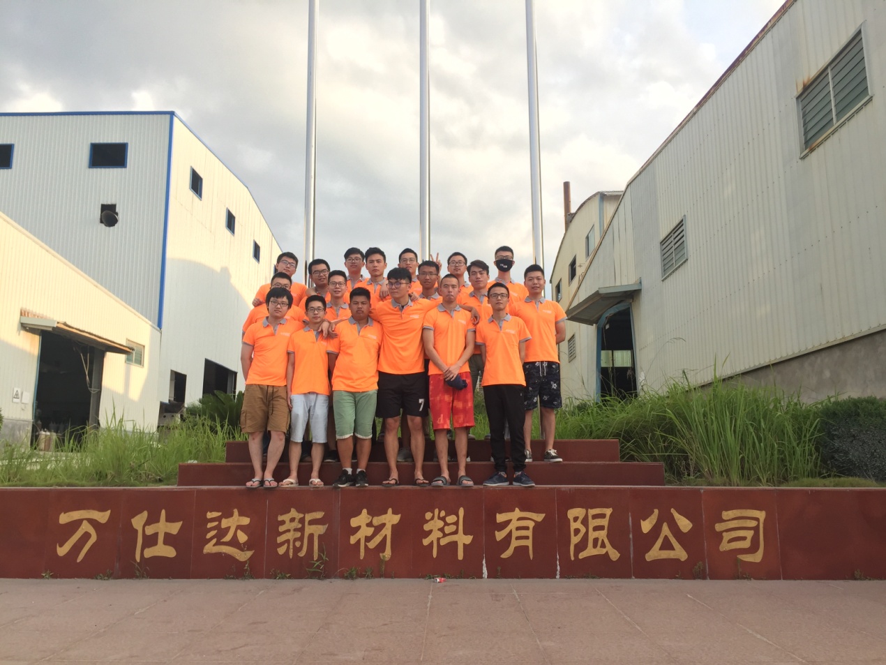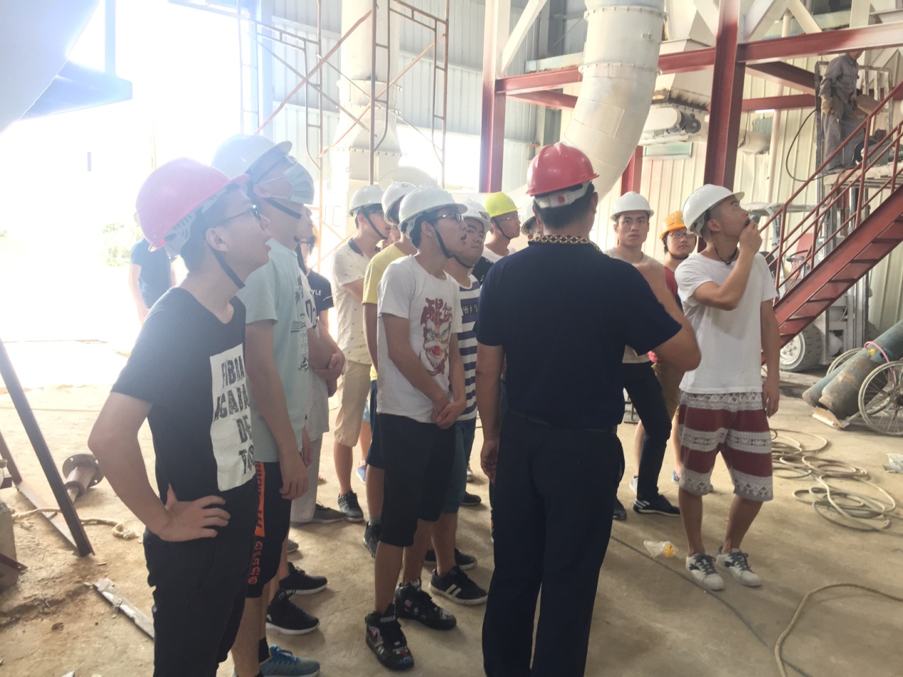 2018年7月2日,我院2015级材料化学专业18名同学在连州万仕达新材料有限公司开始了为期四个月的专业实习。公司为我院实习生组织了两天的岗前培训,培训中详细介绍了公司的发展历史、生产经营状况、生产工艺等情况,公司董事长梁东全先生陪同大家参观了生产车间等工作场地,还结合自己亲身经历,为同学们做了“明辨是非塑人生”的主题报告,同时介绍各个实习岗位的操作技能。实习同学们在梁董事长的鼓舞下,正式开始实习工作,集体进入生产车间,走向岗位,在实践中受教育、长才干、学以致用。