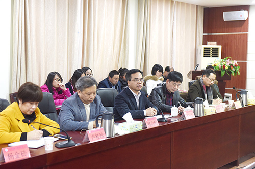 12月27日下午,党委书记陈弘、副校长郑山明带领着人事处、组织部、党政办、教务处、发规处、科技处等部门负责人,专程来到我院参加迎新年座谈会,看望慰问全体教师,为我院教师加油鼓劲,提振精神,共同回顾2017年工作,展望新年,勉励我们凝心聚力争创新的佳绩。