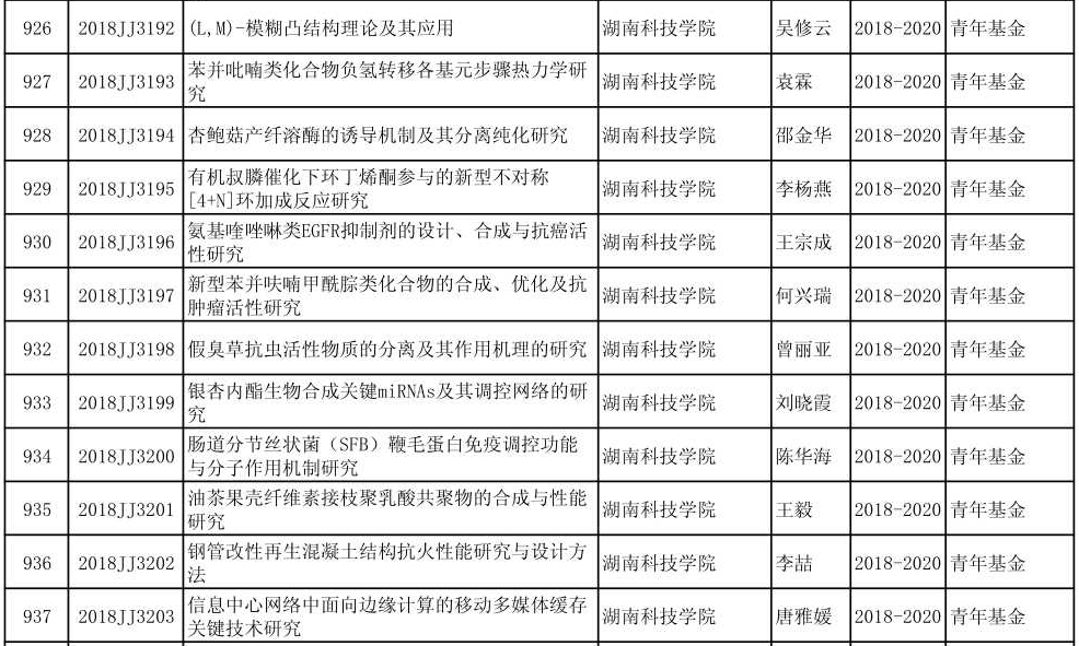 湘基金委[2018]1号_2018年度湖南省自然科学基金立项通知