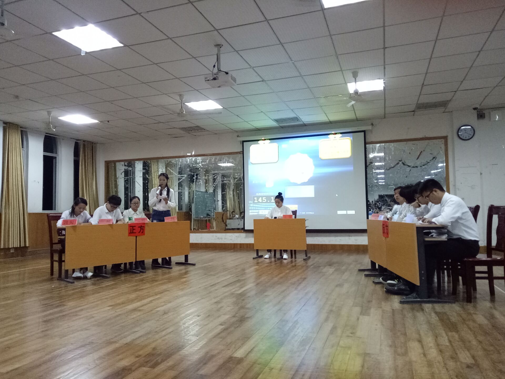 宋青霞向观众介绍本次论赛的辨题、各辩论队辩手及辨赛规则。正方熬夜队持睡不着更痛苦的观点,反方赖床队则持起不来更痛苦观点。正反方一辩开篇立论,反驳论证紧随其后,双方二辩从另一个方面进行引经据典,让人耳目一新。在攻辩环节,双方辩友唇枪舌剑、你来我往、侃侃而谈,尤其是在精彩的自由辩论环节,辩手们言词犀利,面带微笑却不失风度,临场应变能力极强,全场响起一次次的掌声。