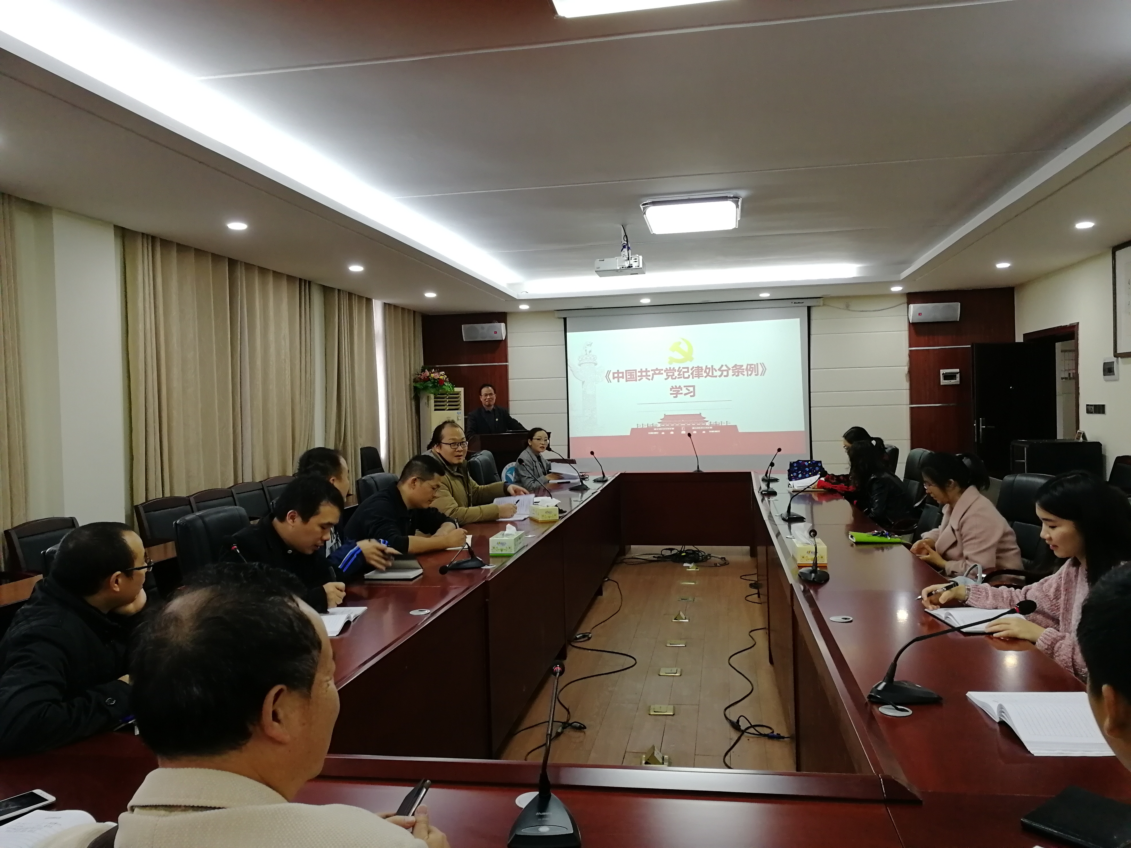 10月23日下午,化生学院党总支组织教工党员在逸夫楼320会议室集中学习新发布的《中国共产党纪律处分条例》,学院专职组织员赵雨云同志主讲。