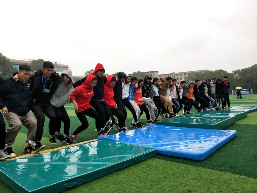 当日十二点,各班队伍已经准备就绪,面对突如其来的雨,比赛不得不推迟半个小时。面对越下越大的雨,在征求各参赛队伍的意见后,比赛冒雨继续进行。一个个参赛的队伍喊着整齐的“一二一、一二一、一二一……”口号,相互搀扶,互相鼓劲,在雨中充分地燃烧青春的壮志和激情。跑进途中遇到有人跌倒,所有人都自发停下来,站起来、扶起来、跑起来,所有的队伍都坚持跑完了全程,即使没有取得名次,但可以看出来,每个人都很开心,以此为一次难忘的经历。