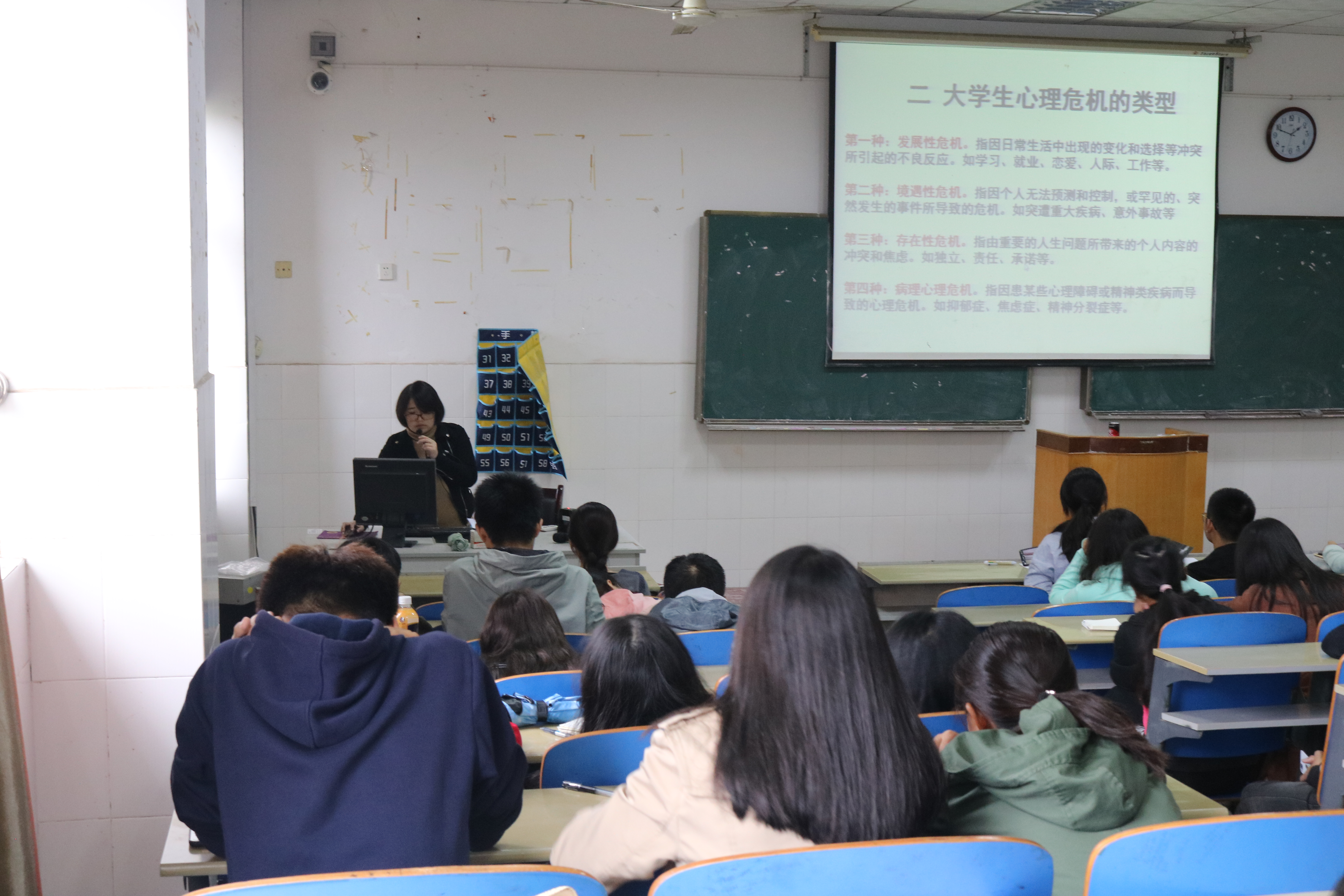 周闻名详细地讲授了有关于朋辈心理信息员的各种知识,比如如何成为一名合格的信息员,如何用正确的语言来引导同学们走出心理障碍。陈丽琼重点讲解了大学生心理危机的识别与干预,告知信息员在不同的情况下采取及时妥当的处理办法。
