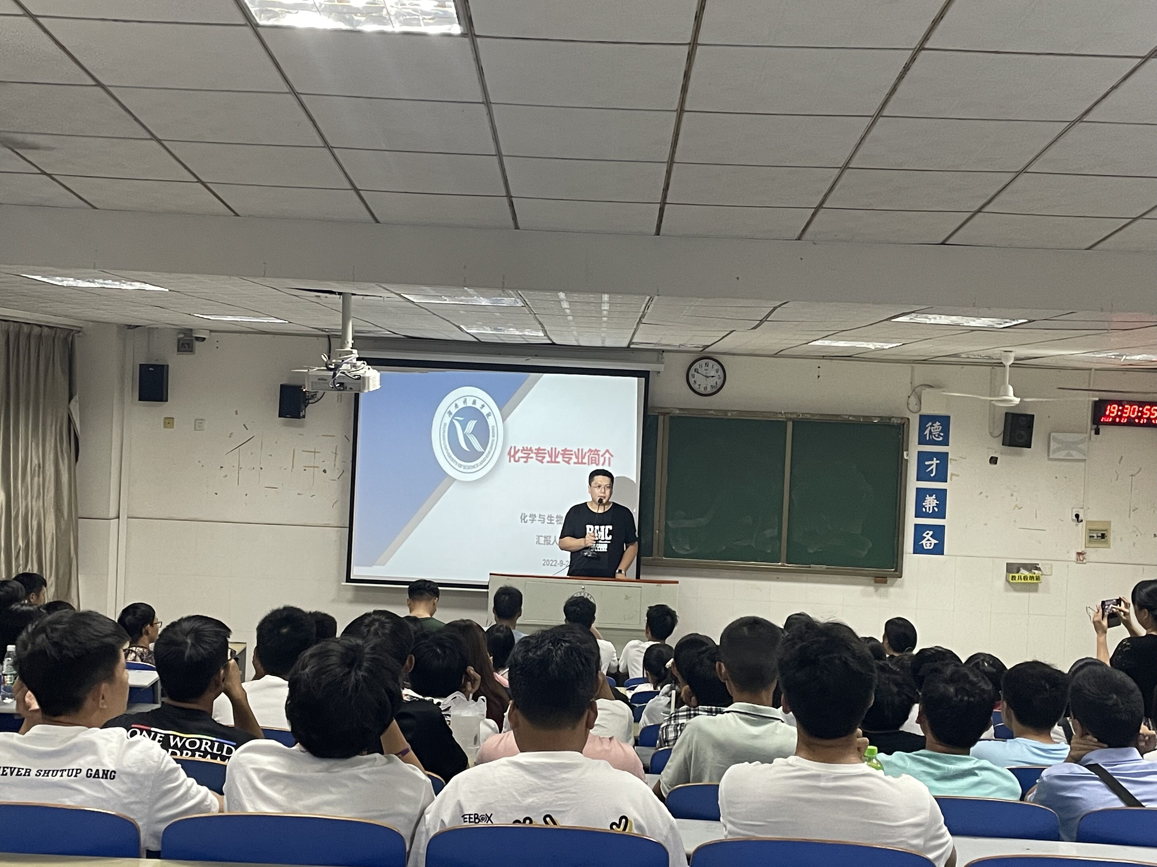 曹颖同各位新生提出了该专业的学习方法与学习规划,期望他们为大学生活设立明确的目标,扎根专业知识,提高专业技能,毕业后成为一名业务能力精湛、德才兼备的化学教师。