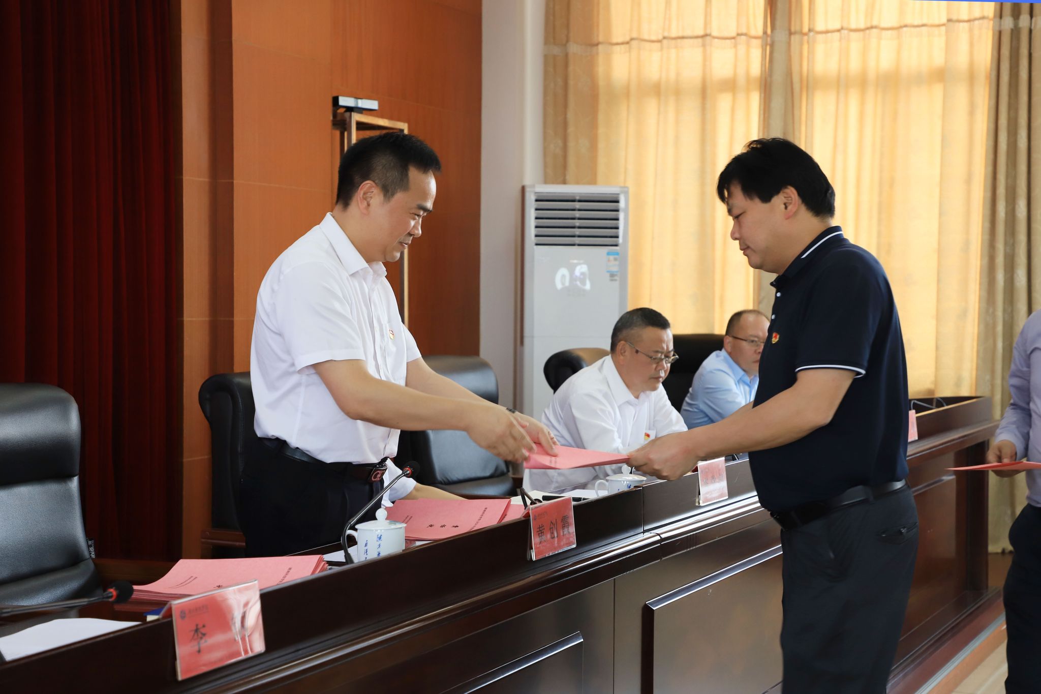 现场,机关单位、教学学院代表向李钢、黄创霞递交了《维稳综治安全工作责任书》。