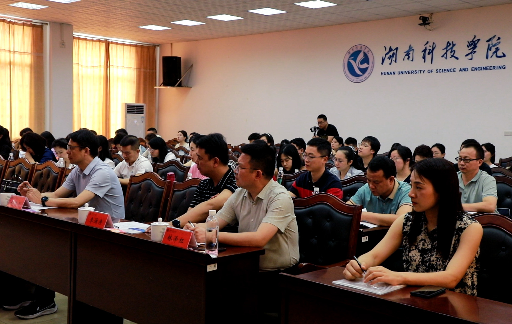 开班式后,湖南省委教育工委委员,省教育厅党组成员余伟良作首场专题辅导报告。培训班学员及我校各教学学院党总支副书记、新闻宣传专干到场聆听。
