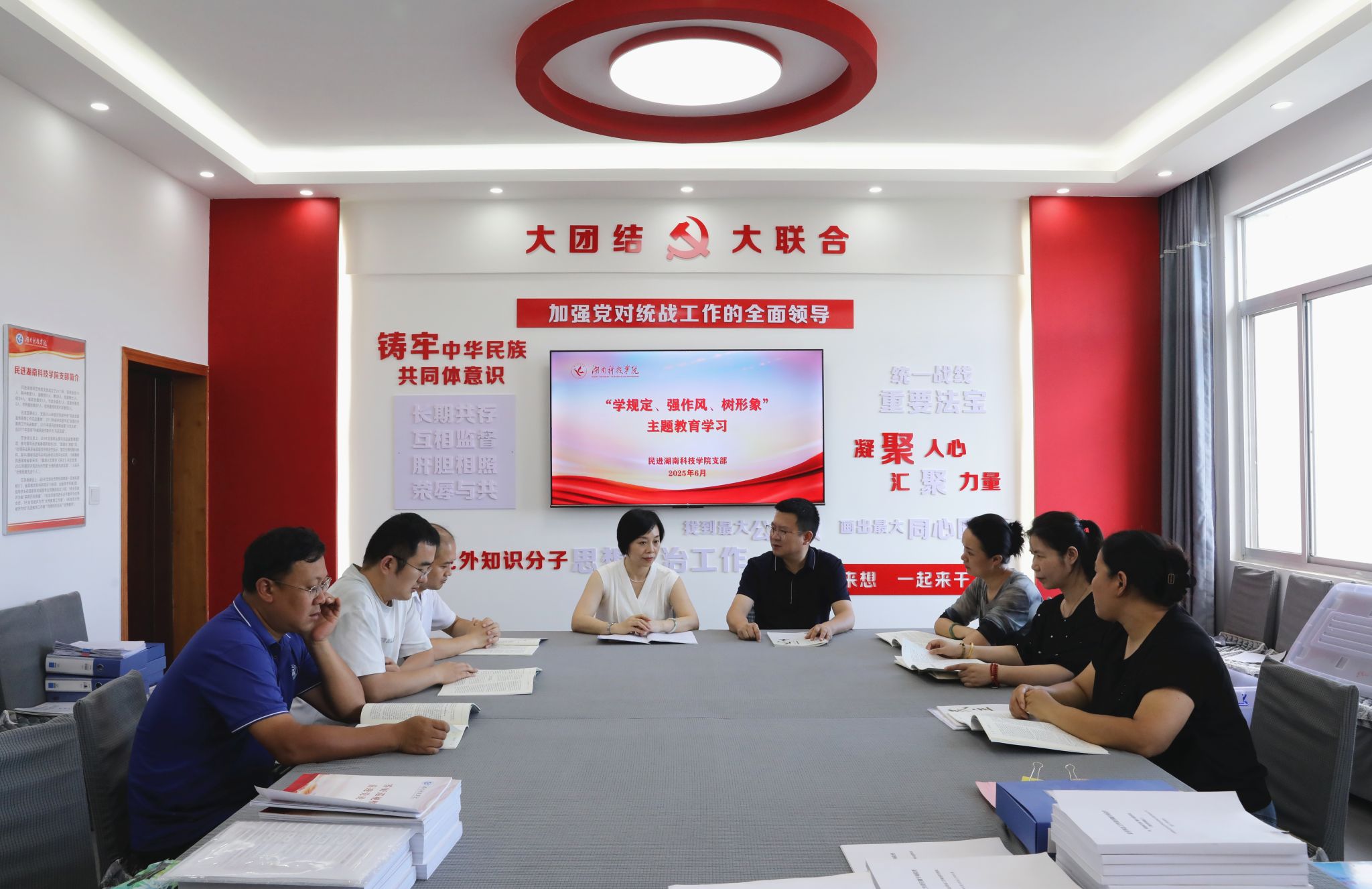 本网讯(通讯员 李小雨 李焕品)6月27日,民进安博站官网登录入口_安博(中国)支部召开“学规定、强作风、树形象”主题教育学习会,深入学习贯彻中共中央八项规定精神,全面加强纪律作风建设。支部主委何丽萍主持会议并讲话。