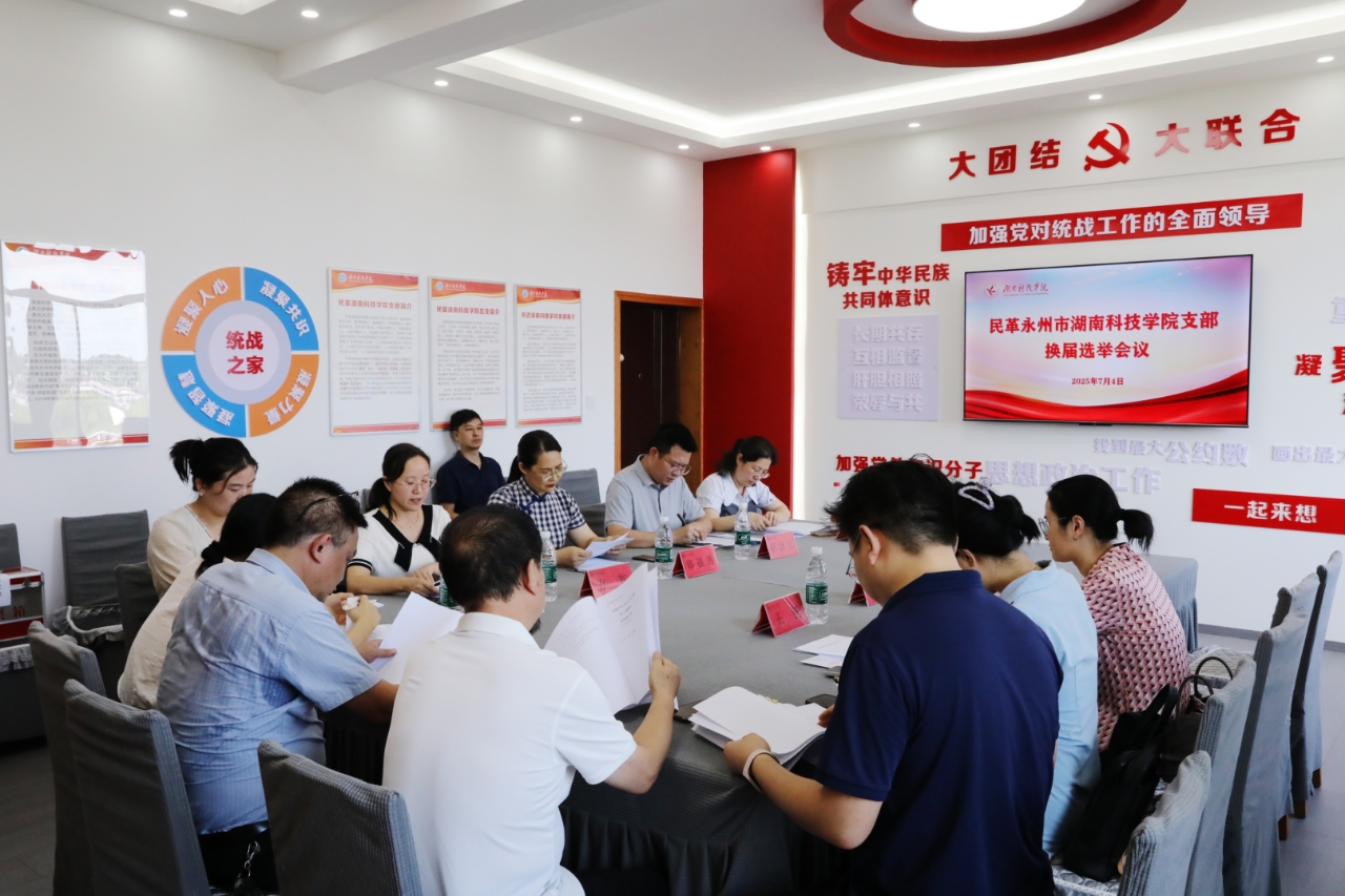 本网讯(通讯员 唐良玉)7月4日下午,民革安博站官网登录入口_安博(中国)支部召开换届选举大会。会议选举产生了以方芳为主委,唐良玉为副主委、刘晓霞为委员的第四届支部委员会。副校长郑银芳、民革永州市委会有关负责同志、学校宣传统战部相关负责人及全体支部党员参加会议。