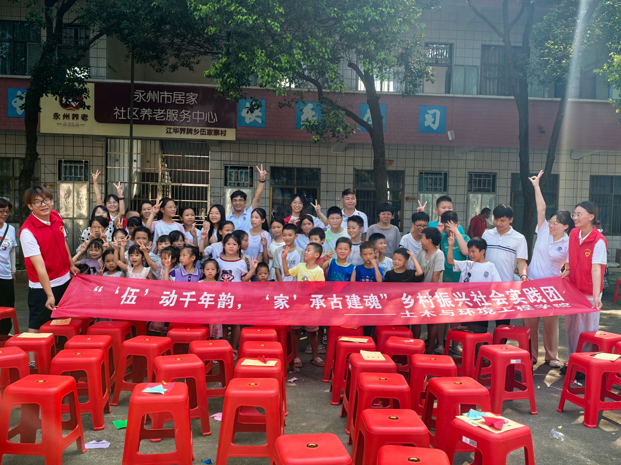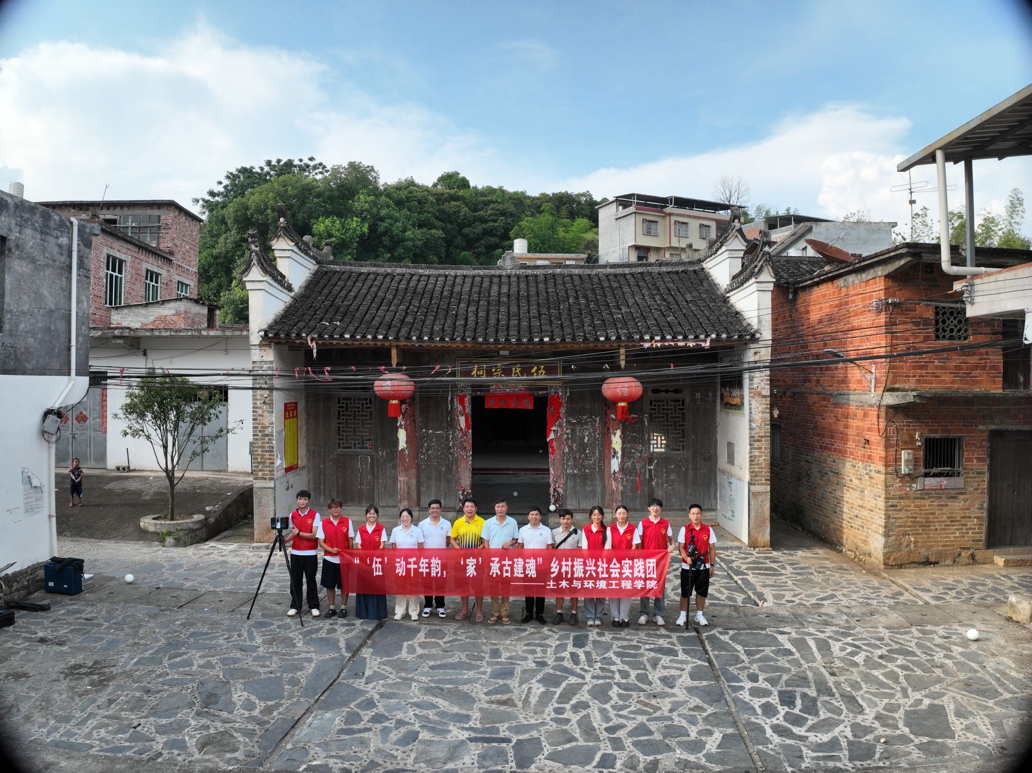 本网讯(通讯员 陈勇国 蒋阅)7月上旬,学校驻江华瑶族自治县界牌乡伍家寨村工作队充分发挥校地联动优势,邀请土木与环境工程学院"三下乡"实践团,联合村支两委共同开展了一系列富有成效的暑期帮扶活动。此次活动以"伍动千年韵,家承古建魂”为主题,通过多元化的帮扶形式,为乡村振兴注入新动能。