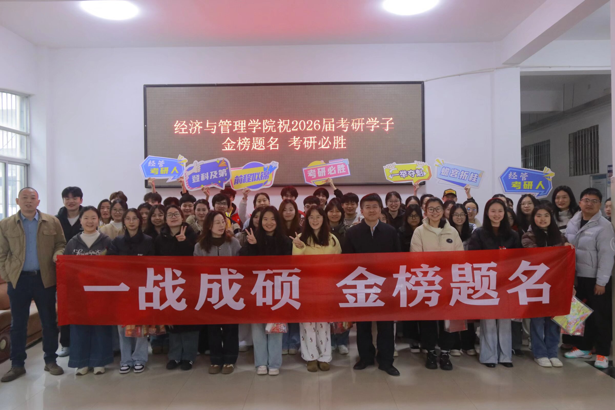 据悉,经济与管理学院始终把学生成长放在首位,此次活动覆盖学院2026届全体考研同学,学子们纷纷表示,“一定不辜负学院的期待,全力以赴考出好成绩!”