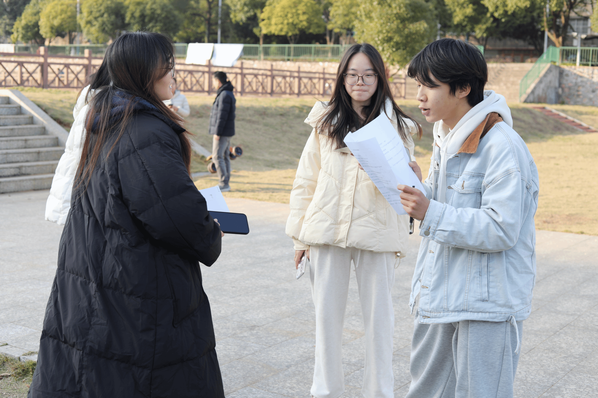活动现场,“寻宝达人们”火力全开,或穿梭于爱莲湖的林荫小道,或驻足于桂园人工湖的观景台,仔细搜寻隐藏的“宝藏”。找到明信片后,大家立刻投入答题闯关,遇到难题时还会现场讨论交流;而“错题罚时”的规则设计,更让闯关多了几分竞技感,也倒逼大家主动消化知识点。“以前觉得思政知识有点抽象,现在在寻宝闯关的过程中主动去记、去想,反而记得更牢了!”参与活动的伍诗琪同学笑着说。