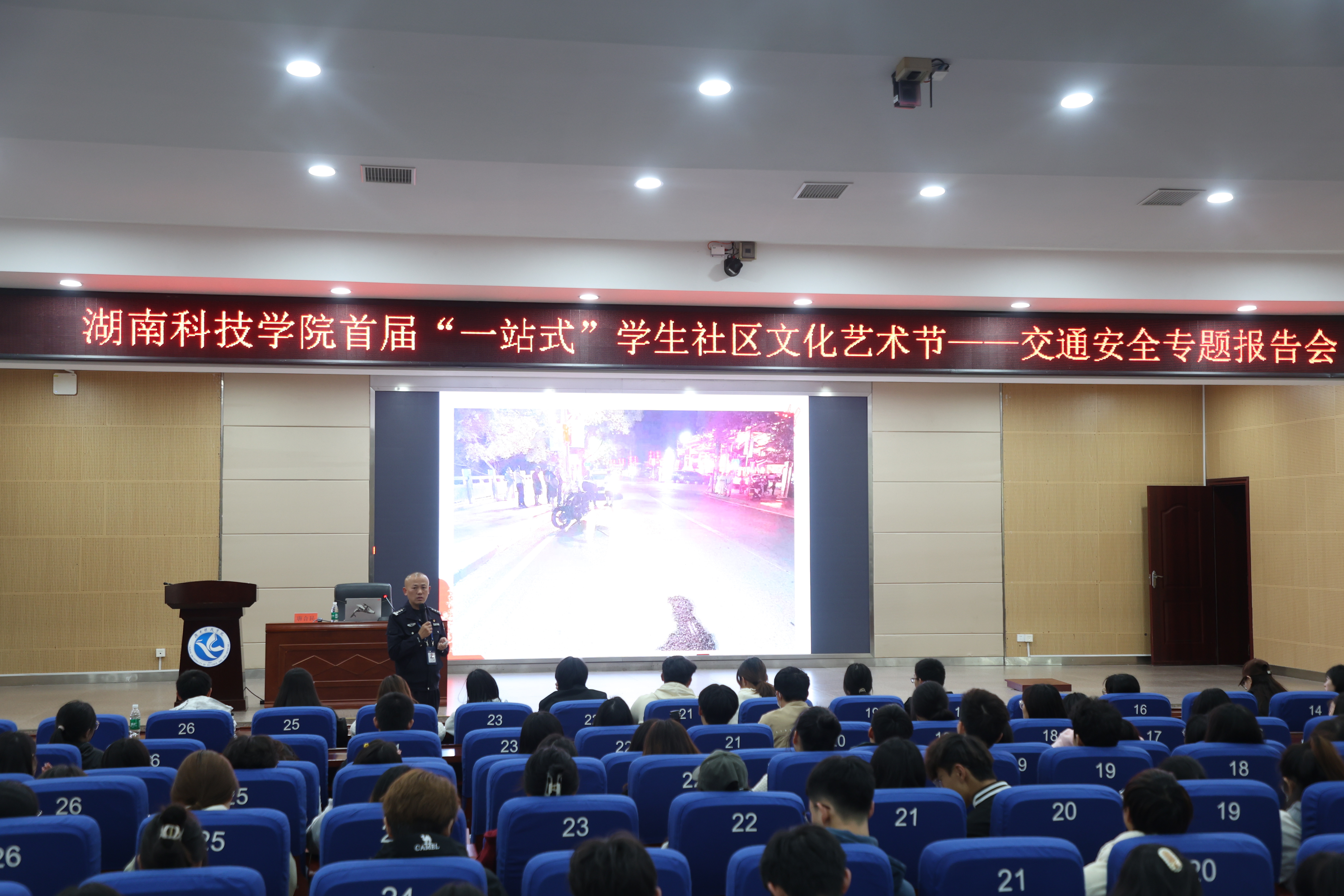 本网讯 为提升我校学生交通安全意识,普及交通安全常识,10月26日晚,安博站官网登录入口_安博(中国)交通安全专题报告会在潇湘大讲堂举行,会议邀请零陵区交警大队队长唐合民主讲,600多学生参加。