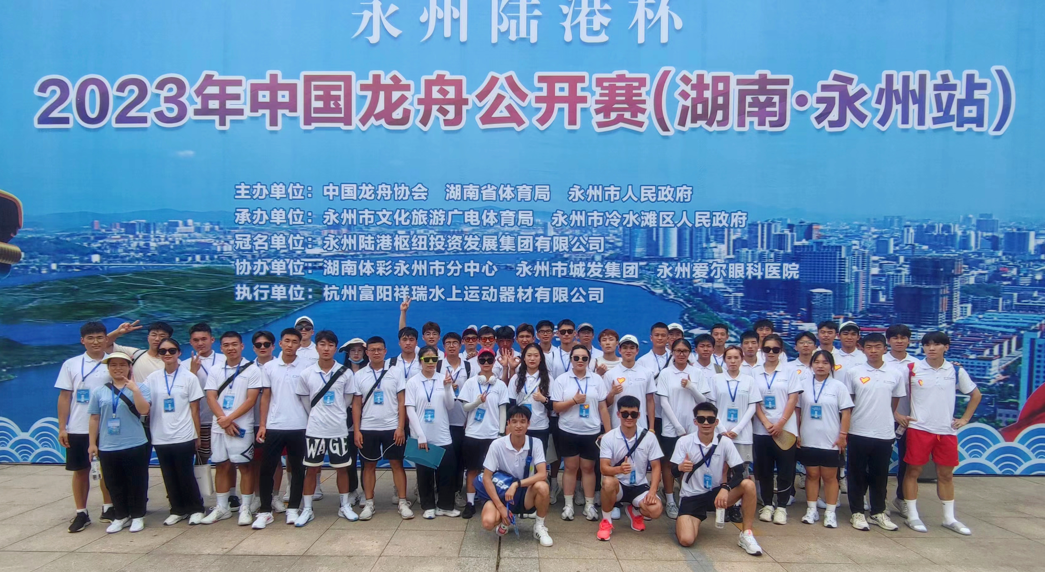 本网讯(通讯员 黄婉)6月3日至4日,中国龙舟公开赛湖南永州站在永州市冷水滩滨江公园举办。我校体育学院受永州市文化旅游广电体育局的邀请,派出40名辅助裁判员和12名志愿者参与了本次赛事组织工作,为本次比赛的顺利进行提供了支持。