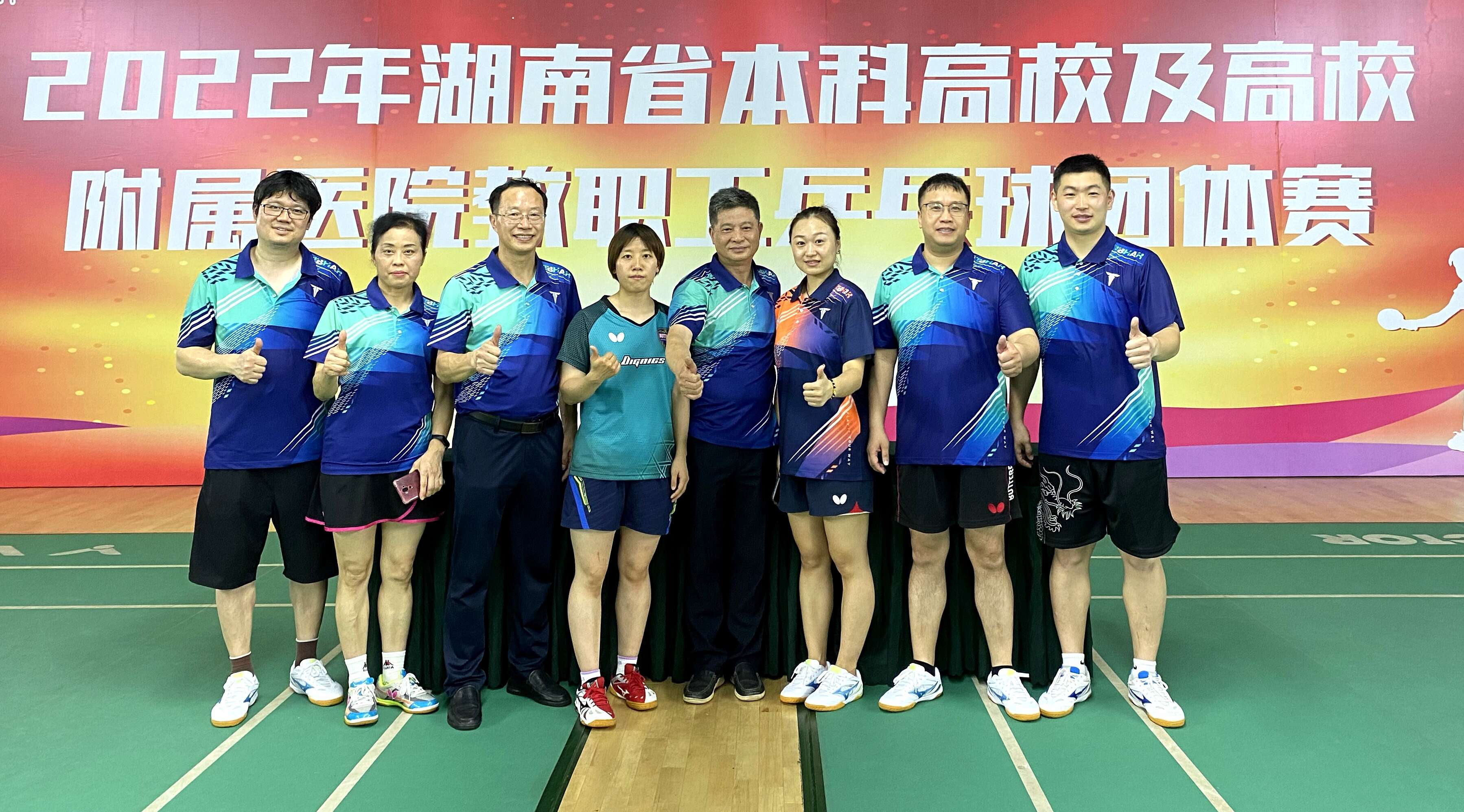 本网讯 6月18日至19日,2022年湖南省本科院校及附属医院教职工乒乓球混合团体赛在湖南省人民体育场举行,我校代表队奋力拼搏,荣获第六名的好成绩,位居同类院校第一。