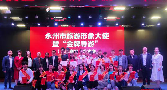 本网讯 日前,永州市旅游形象大使暨“金牌导游”(双牌赛区)总决赛圆满落幕。本次大赛由永州市文化旅游广电体育局指导,中共双牌县委、双牌县人民政府主办。旅游与文化产业学院学生侯丁蕊、郭鑫磊分别斩获冠军、季军,石金霞获得最佳人气奖。