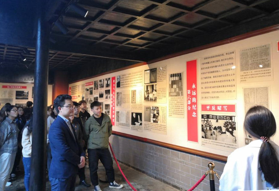 本网讯  4月18日,理学院学生党支部组织青年党员、团员60余人赴李达故居开展党史学习教育。理学院学生党员组成的宣讲团向大家讲解了李达“坚持真理,不屈不挠,身体力行,万世师表”的光辉一生,带领大家一起学习了党的早期历史。学生党员还重温了入党誓词。