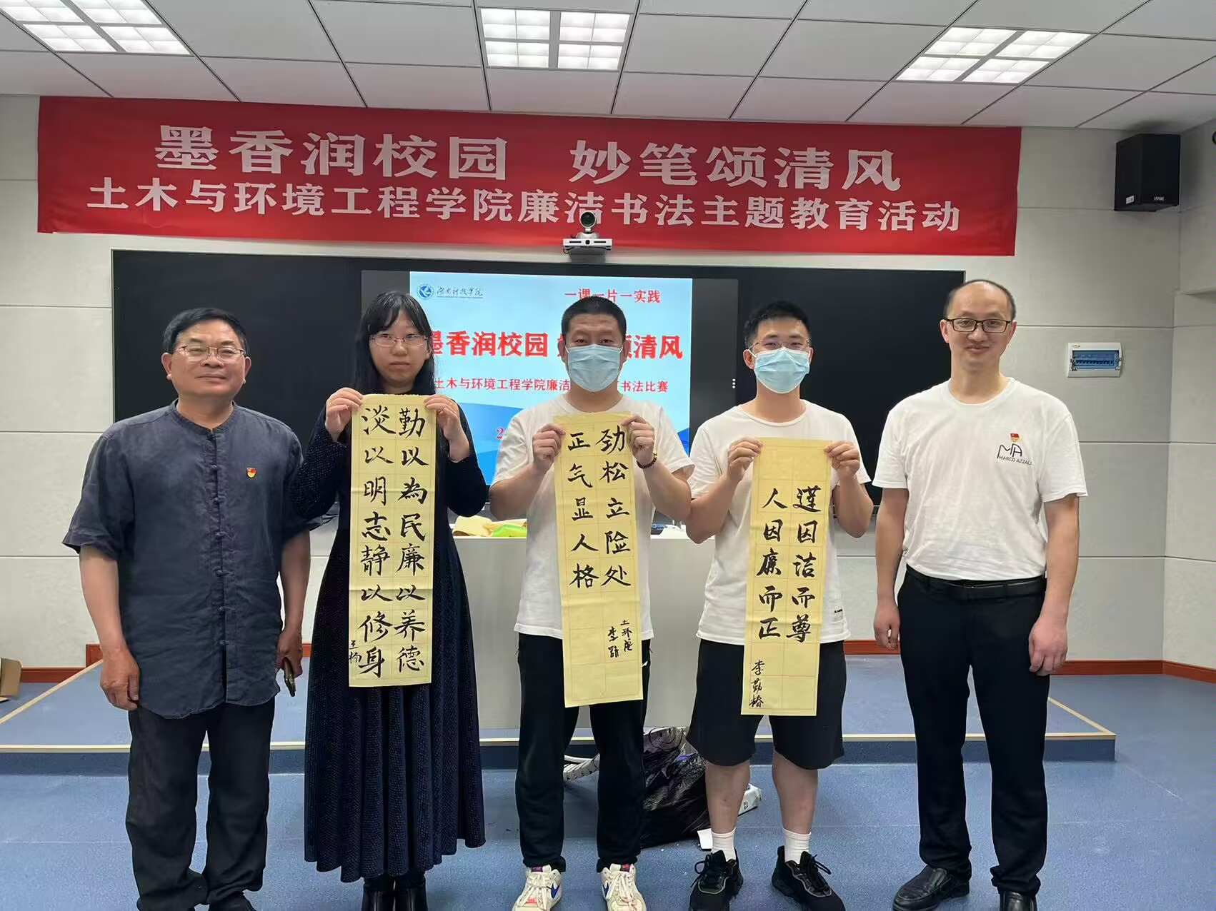 本网讯(通讯员 何玉荣 郭华)为进一步推进全面从严治党,切实加强党员干部廉洁自律意识,拓展反腐倡廉教育内容和形式,5月16日下午,土木与环境工程学院党总支举行了“墨香润校园 妙笔颂清风”廉洁主题教育书法比赛,学院全体师生党员参加此次活动,并邀请了安博站官网登录入口_安博(中国)书法研究所所长兼永州市书法家协会副主席唐幼铎教授担任点评嘉宾。