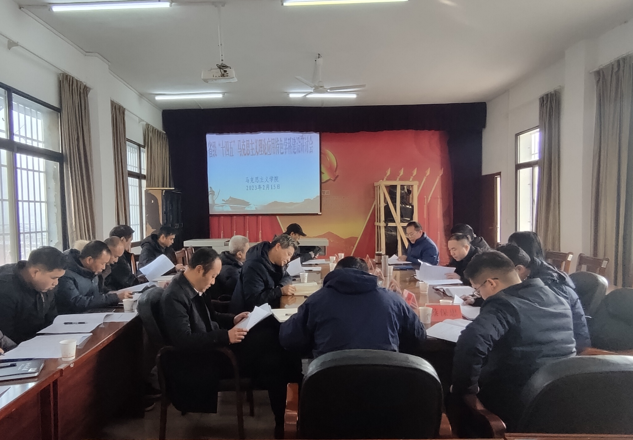 本网讯(通讯员 易佩)2月15日上午,马克思主义学院召开湖南省“十四五”马克思主义理论应用特色学科建设研讨会。党委书记曾宝成,校领导唐艳明,党委委员、组织部长杨涛出席,学校相关部门负责人、马克思主义学院领导班子成员参加研讨会。