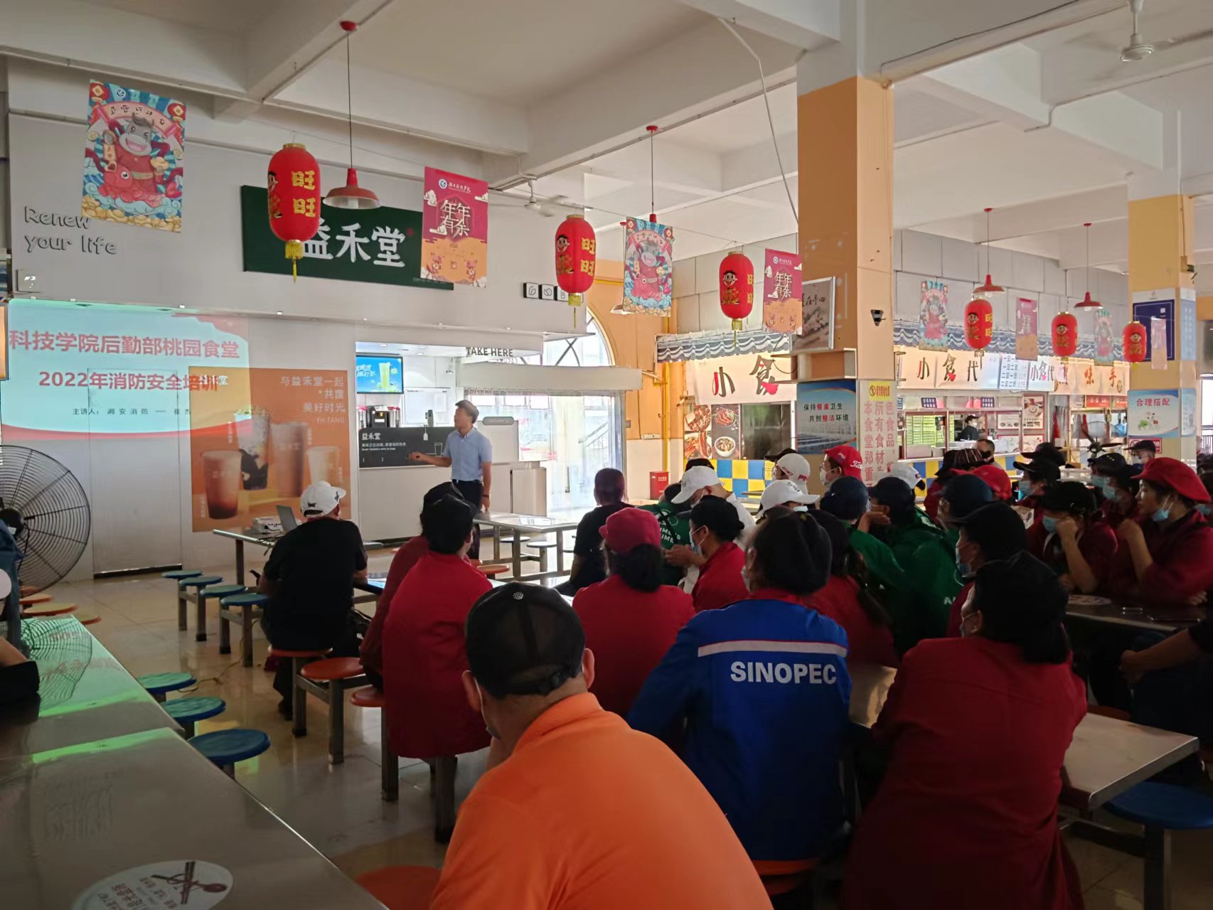 通过此次培训,让全体员工深刻认识到“隐患险于明火,防范胜于救灾”的重要性。进一步提高了各食堂、超市、便民服务中心工作人员的消防安全防范意识,增强了预防火灾和火灾事故逃生自救的能力。