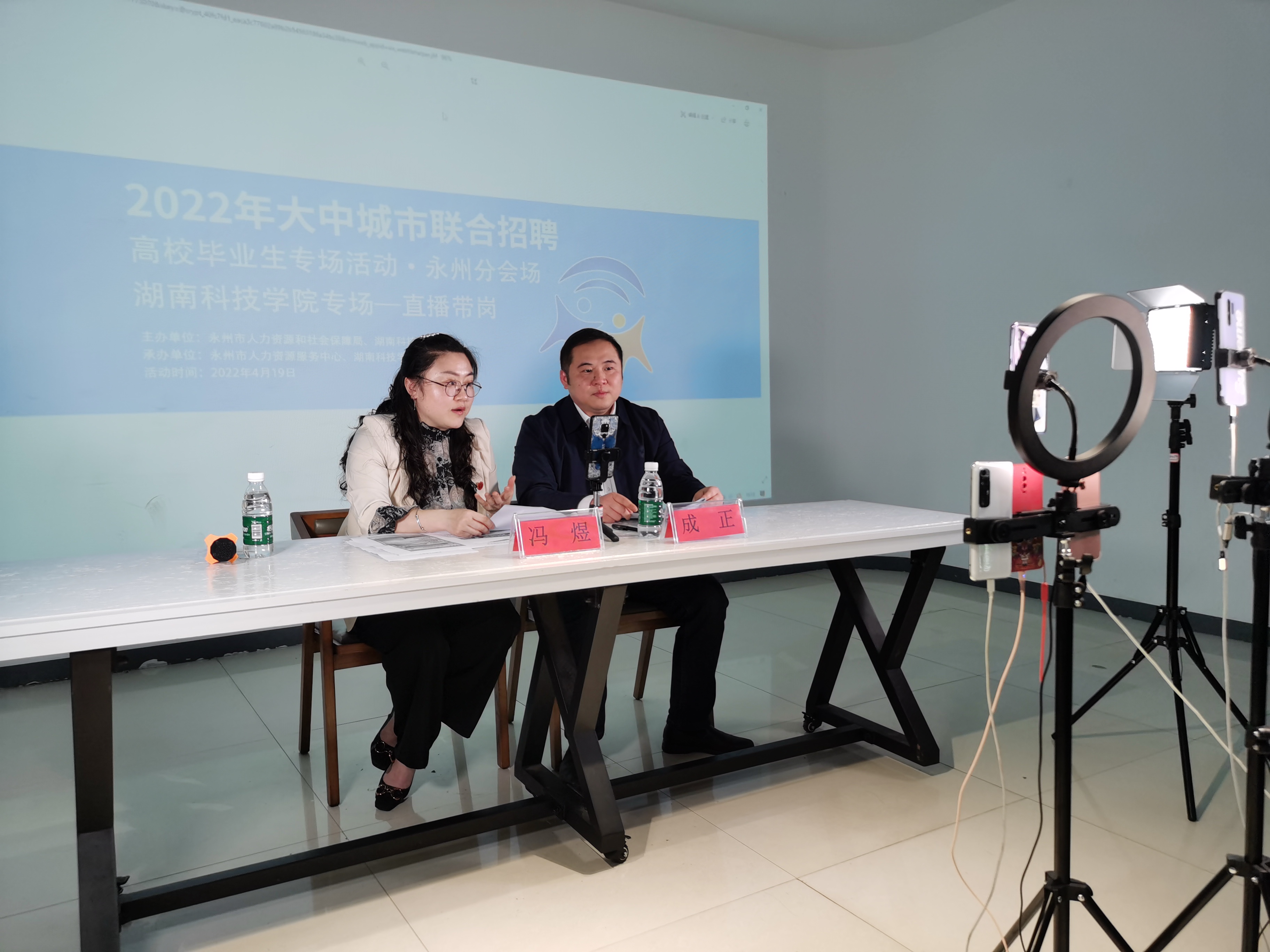 此次直播带岗专场,内容丰富,干货十足,招生就业处副处长冯煜、永州人社局就业科的负责人、招聘企业负责人组成了主播团队,现场解读了就业创业政策、创业担保贷款政策、求职创业补贴政策和青年见习岗位及补贴,解答了直播中大家的咨询和提问;中国邮政储蓄银行永州分行、零陵区日升学校、道州玉潭学校、湖南恒伟药业4家单位通过直播介绍了企业情况,详细讲解岗位要求和薪资待遇,进行了线上招聘;招生就业处处长胡清华贴心准备了求职分析、优势识别等职业指导。