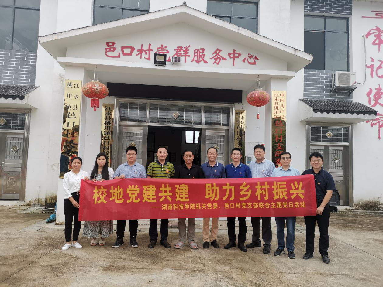 本网讯  为深入开展党史学习教育,探索“校地党建共建,助力乡村振兴”结对共建模式,6月3日,党委委员、组织部部长杨涛率部分党员干部赴我校乡村振兴帮扶点——江永县桃川镇邑口村,与该村党支部联合开展主题党日活动。