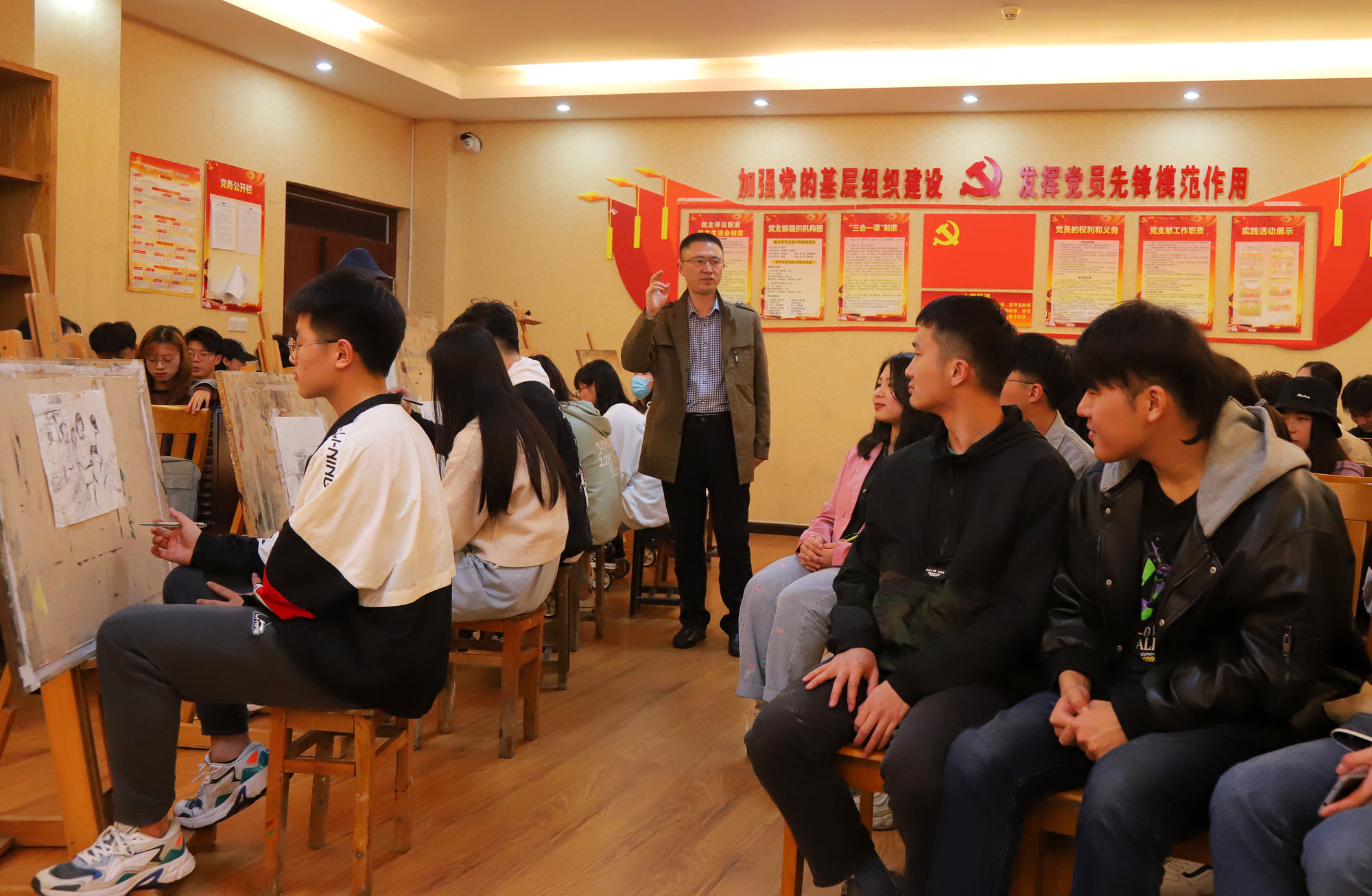 本网讯 为丰富党课内容,增强入党积极分子们在课堂的参与感,美术学院党总支副书记林乔军根据艺术专业学生的特点,结合党史学习内容,推出“你画,我说,他听”的艺术党课,以“艺术+党史”的方式讲述中国共产党光辉历史。