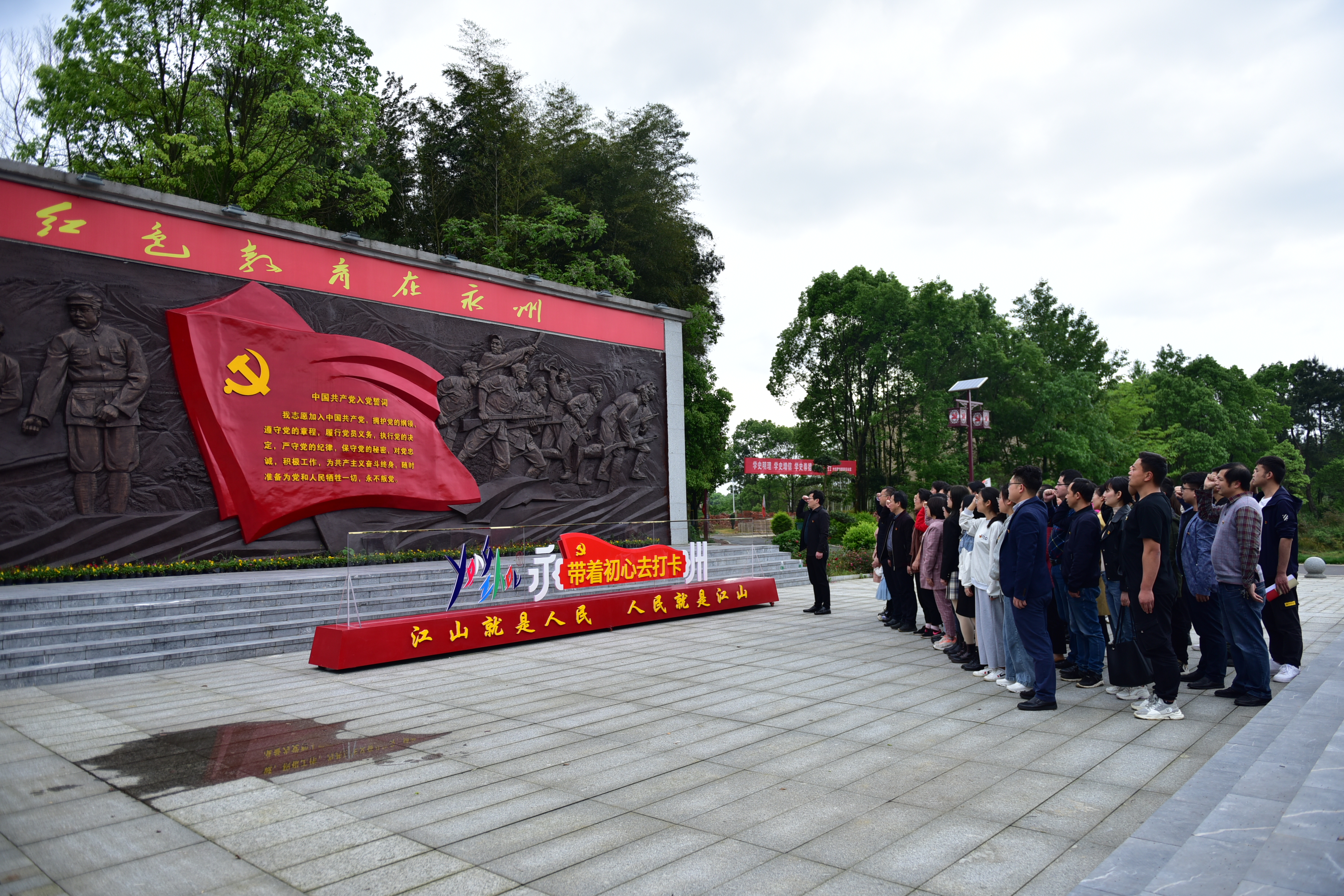 在红星广场,党总支书记唐卫华领誓,全体党员面向党旗,重温入党誓词。红六军团西征转战永州陈列室内,一件件历史实物、一张张历史影像、一幕幕战斗场景将大家带入那段艰苦卓绝的长征历程。在红六军团领导人群像前,同志们聆听了“半根筷子”的感人故事。