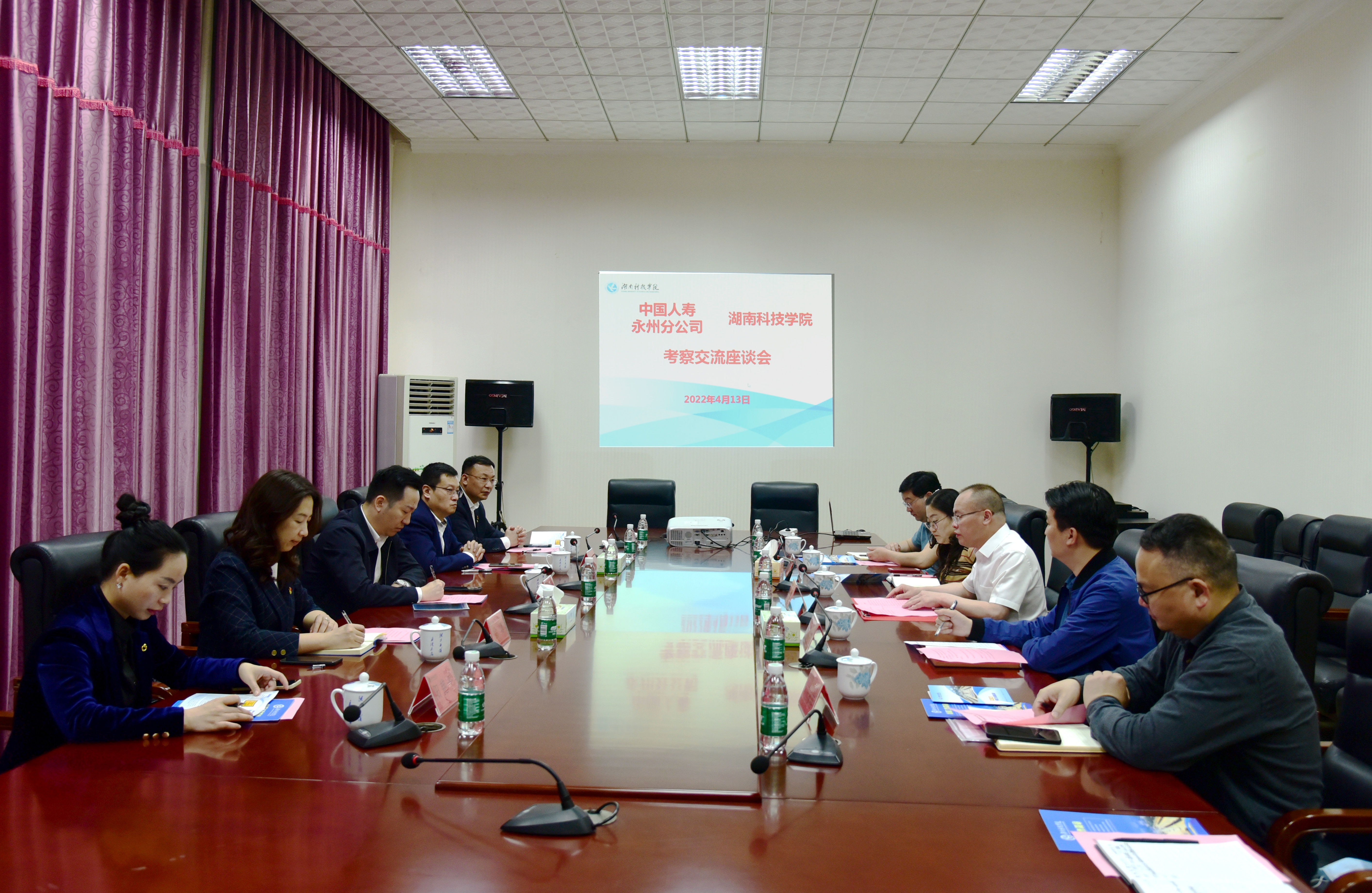 中国人寿永州分公司党委书记、总经理刘翀介绍了公司基本情况,以及公司对非学历教育培训和人才招聘要求。双方就建立中高级管理人员培训基地和央企金融人才孵化进行交流并达成初步合作意向。