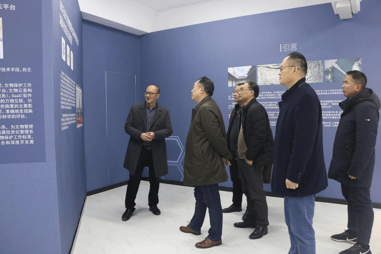 李光衡一行参观了不可移动文物数字化保护、BIM技术应用、病害检测与健康监测、不可移动文物修缮加固等研究内容,重点探讨了镇永楼还原、庐山观音桥预防性保护等项目,深入了解了湖南传统村落数字化采集和处理集成技术、文物遗产物联网智能监测云平台等科研成果,并结合湖南省文物保护工作的发展趋势探讨了重点实验室建设思路。