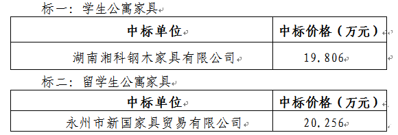 安博站官网登录入口_安博(中国)采购中心对安博站官网登录入口_安博(中国)2018年学生公寓及留学生公寓家具采购项目于2018年7月17日进行了自行招标,经评审,现将结果公告如下: