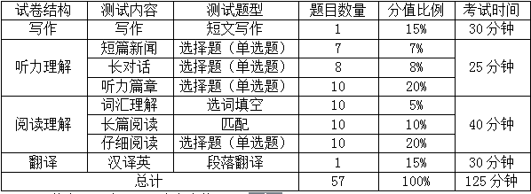 b、请在规定时间内依次完成作文、听力、阅读、翻译各部分考试,作答作文期间不得翻阅该试题册。听力录音播放完毕后,请立即停止作答(听力考试作答时间包含在播音时间内),监考员将立即回收答题卡1,得到监考员指令后方可继续作答。