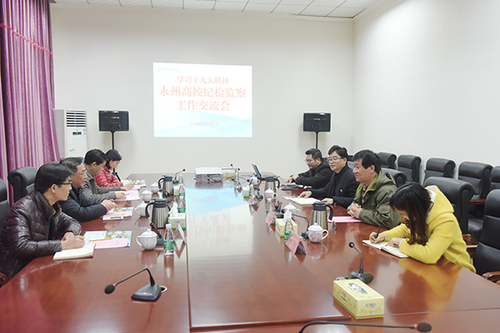 蒋衡湘、易清国分别介绍了各自学校开展纪检监察工作的情况,并对我校纪检监察工作的创新举措和取得的成绩大为赞赏,表示深受启发,希望以此次会议为契机,加强联系沟通,建立起永州三所高校纪检监察工作交流互动的常态机制,互帮互学,共同进步。