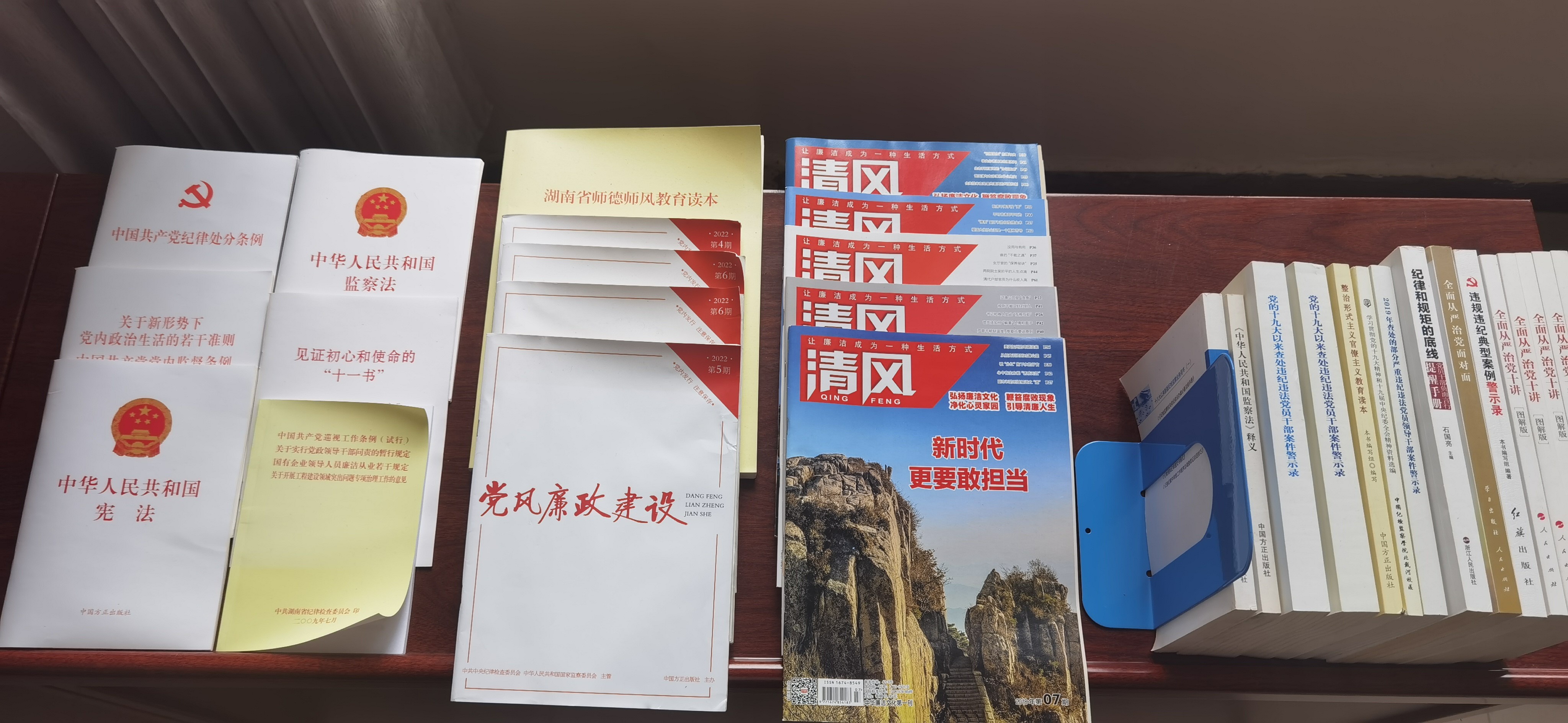 打造清廉阵地,丰富教育载体。教育引导广大党员干部和师生用习近平新时代中国特色社会主义思想凝心铸魂。以全省高校党建“样板支部”为平台,建成开放党建陈列室,开辟党风廉政建设党报党刊陈列区,集中陈列《中国共产党纪律处分条例》《党风廉政建设》《全面从严治党十讲》《清风》等20余种刊物书籍,分批组织师生参观学习。