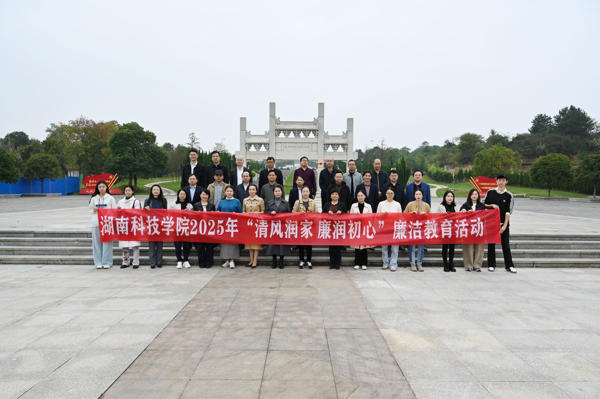 在永州市烈士纪念园,全体人员以庄严仪式瞻仰烈士纪念碑、敬献花篮。仪式结束后,大家共同参观烈士纪念园并聆听李启汉、陶铸、江华三位革命前辈的廉洁家风故事,通过追寻革命先辈生平事迹、重温红色革命精神,从传承先辈家风中汲取廉洁力量。