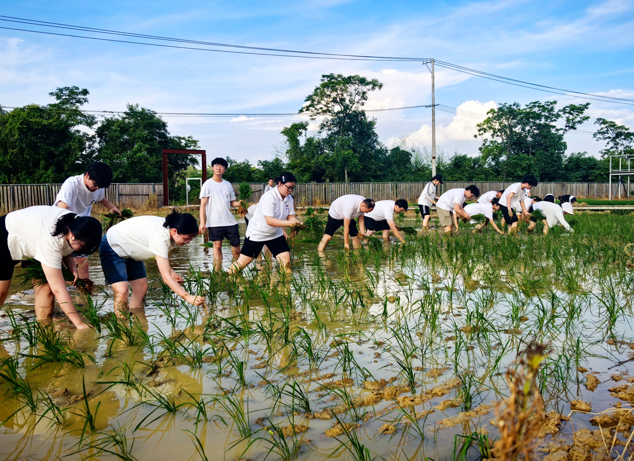 本网讯(记者 彭尧煜 通讯员 蔡彦婷)当思政教育扎根泥土,劳动教育融入稻田,“劳动+思政”将如何“破圈”共育时代新人?6月7日下午,校党委委员、组织部部长杨涛带领40余名师生来到永州市零陵区马坝村稻田艺术基地,深入田间地头参与插秧实践活动,在躬耕田野中体验传统农耕文化,厚植知农爱农情怀。