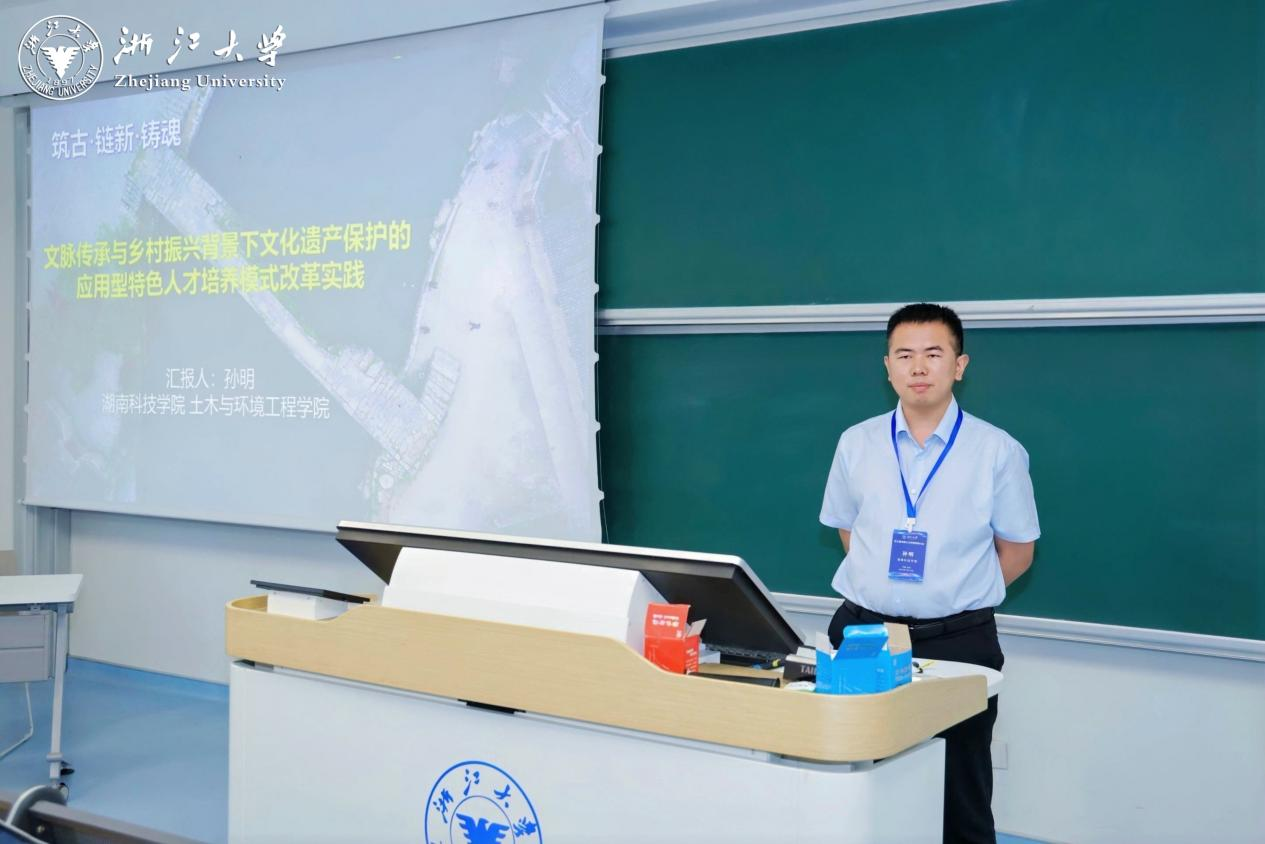 会上,孙明副教授展示了我校在城乡建设领域面临“存量更新替代增量扩张”的深刻变革背景下,依托地方优质文化遗产资源,构建“文化基因解码-智能技术赋能-产教协同育人”方法论体系,将文化遗产保护融入土建类专业应用型人才培养的历程,以及介绍了我校与同济大学土木工程学院、湖南大学建筑与规划学院开展深入合作的情况,为不同类型高校土建类专业教育的数字化转型提供可复制的协同创新模式。