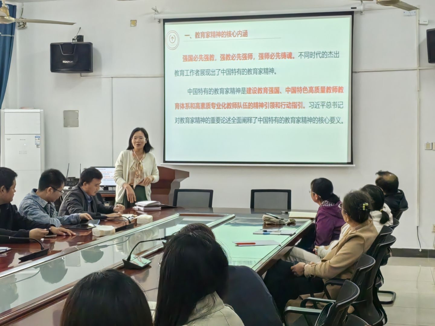 廖春艳同志围绕“教育家精神”的核心要义,新时代教师的使命担当,教育家精神的时代价值,新时代教师践行教育家精神的实践路径等四个方面进行了授课。通过带领大家深入学习习近平总书记关于弘扬教育家精神的重要指示精神,她系统解读了教育家精神的核心要义,同时结合学校及学院教育教学实际,深度剖析了教育家精神在课堂教学、师生互动等场景中的具体实践路径,并引导支部教师结合自身教学、科研与育人工作实际,探讨如何将教育家精神融入日常教育教学与人才培养全过程。