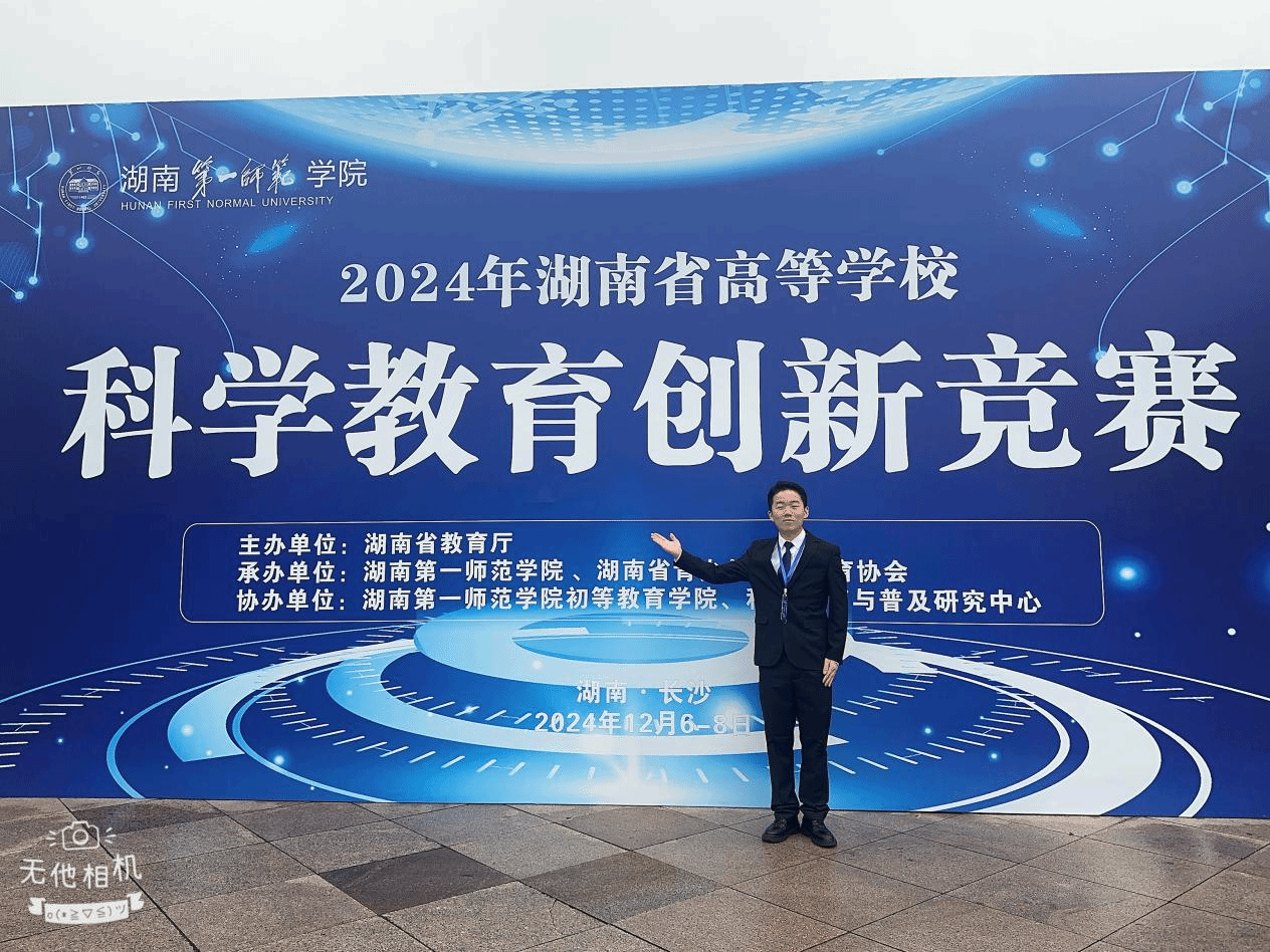 本网讯(通讯员高海峡)12月6日至8日,2024年湖南省高等学校科学教育创新竞赛在湖南第一师范学院举行。本次竞赛由省教育厅主办,我校和湖南省青少年科技教育协会承办。在12月6日至8日为期3天的比赛中,来自全省33所高校(22所本科、11所专科)的95位教学创新选手和66件教具与器材制作作品,分本科组和专科组展开激烈角逐。学院21级物理学专业朱洪民同学,在指导老师高海峡的悉心指导下,荣获“教学创新”三等奖,为学院赢得了荣誉。