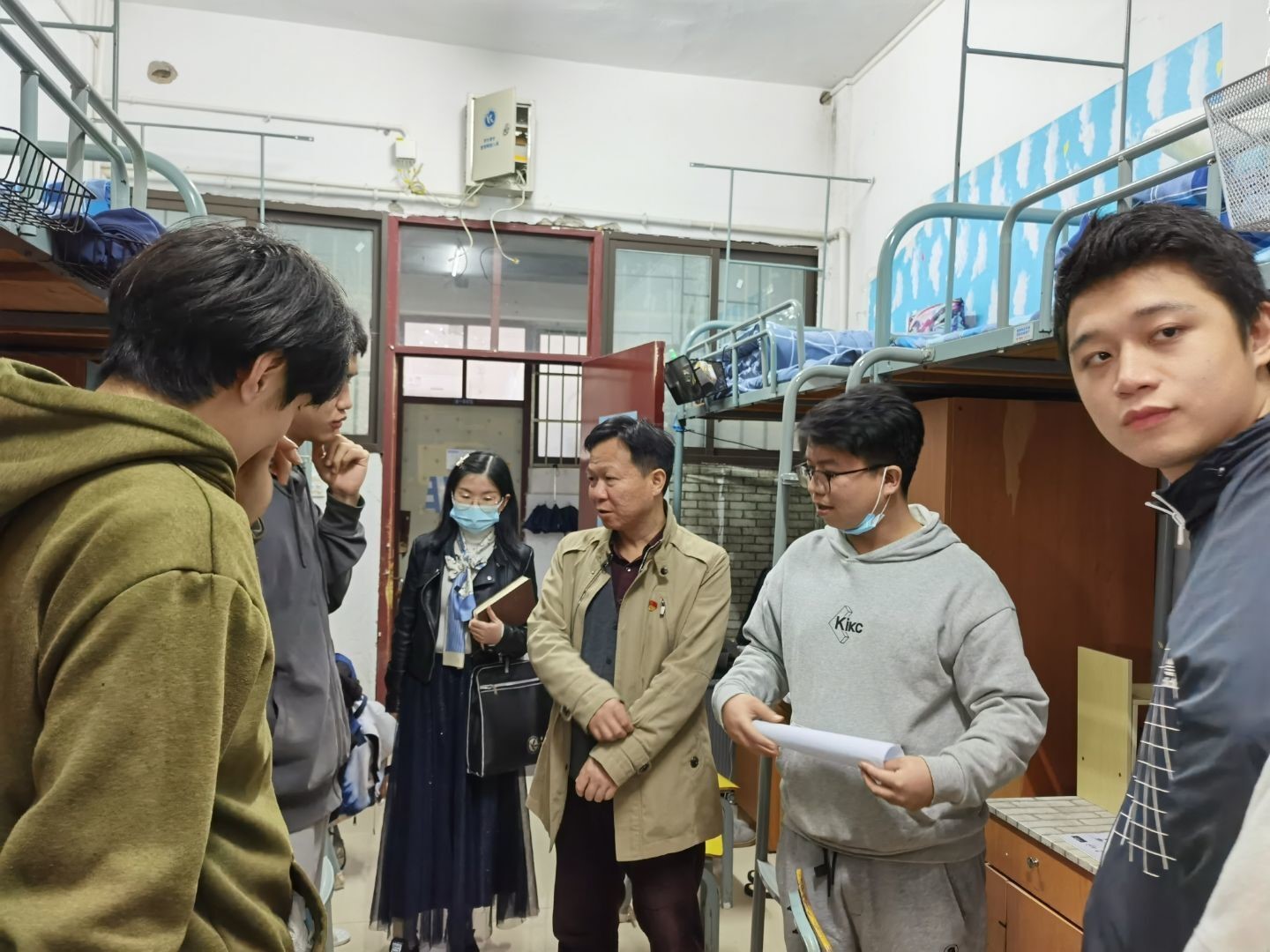 老师们下寝不仅检查寝室卫生、归寝情况、防疫日常,细致排查违规大功率电器等安全隐患,更是把育人搬到寝室,他们同学生们谈理想、谈人生规划、探讨专业学习等,整个过程气氛活跃。此外,学院领导也深入调研了同学们的困难与需求,表示会尽力尽快帮同学们解决问题。
