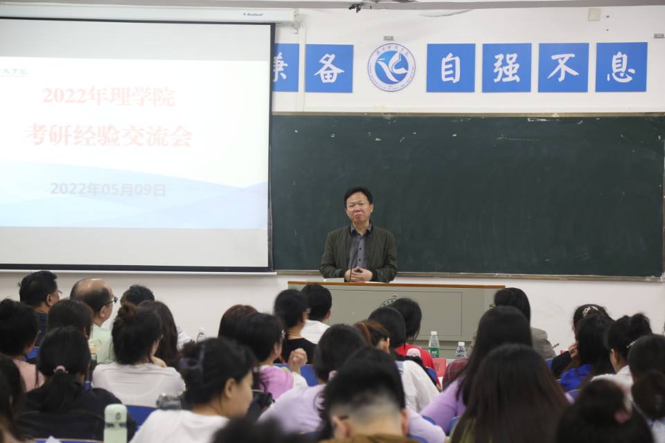 本网讯(通讯员田晓润杜俊杰)5月9日晚,理学院举行考研经验交流会,全体院领导、教师代表出席,学院近200名学生参加。院长唐耀平、党总支书记唐卫华发表讲话。