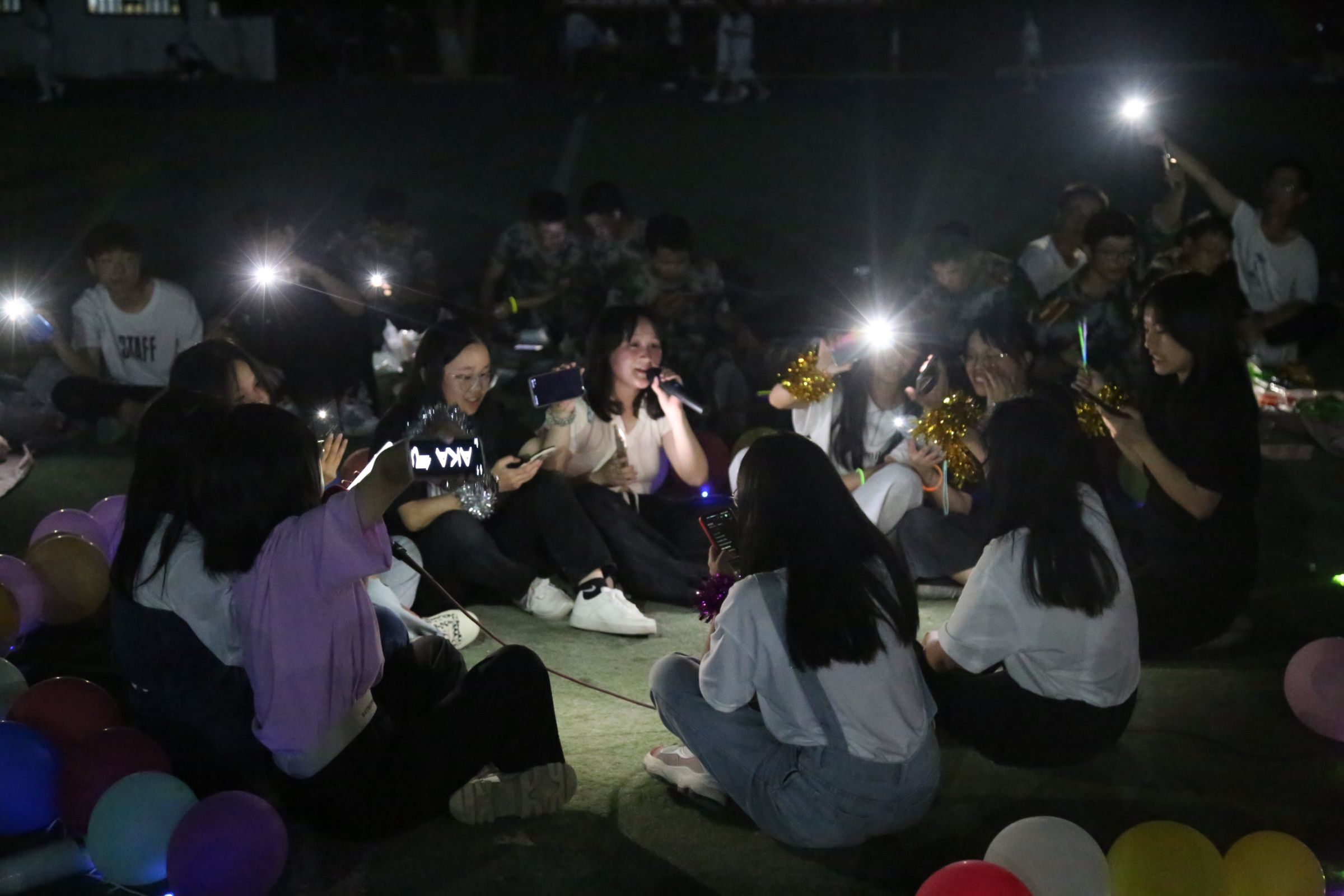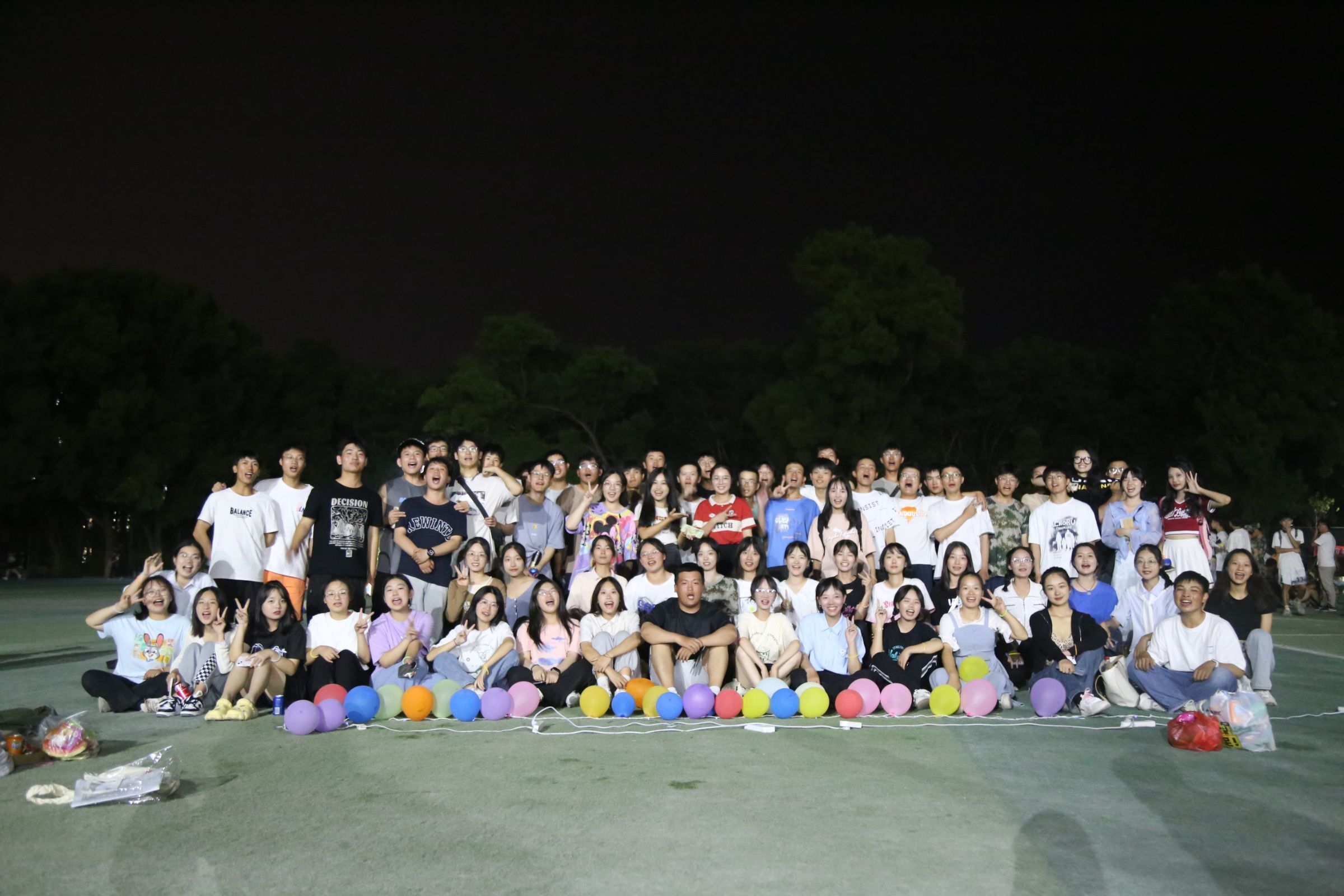 布置好场地,分发好零食后,活动正式开始,同学们在各自班级的活动场地大放异彩、展现自我。热情青春的音乐飘扬在操场的上空,英姿飒爽的舞姿引人注目,“抓鸭子”、“击鼓传花”、“数字炸弹”等欢乐的游戏气氛破除新生们对新朋友、新环境的陌生感。最后,随着班级的大合唱,本次破冰之旅落下帷幕。