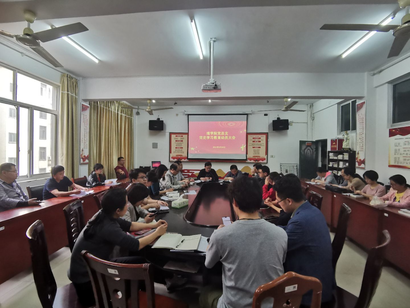 3月30日,理学院召开党史学习教育动员大会,全体院领导和教职工党员参加,会议由党总支书记唐卫华主持。